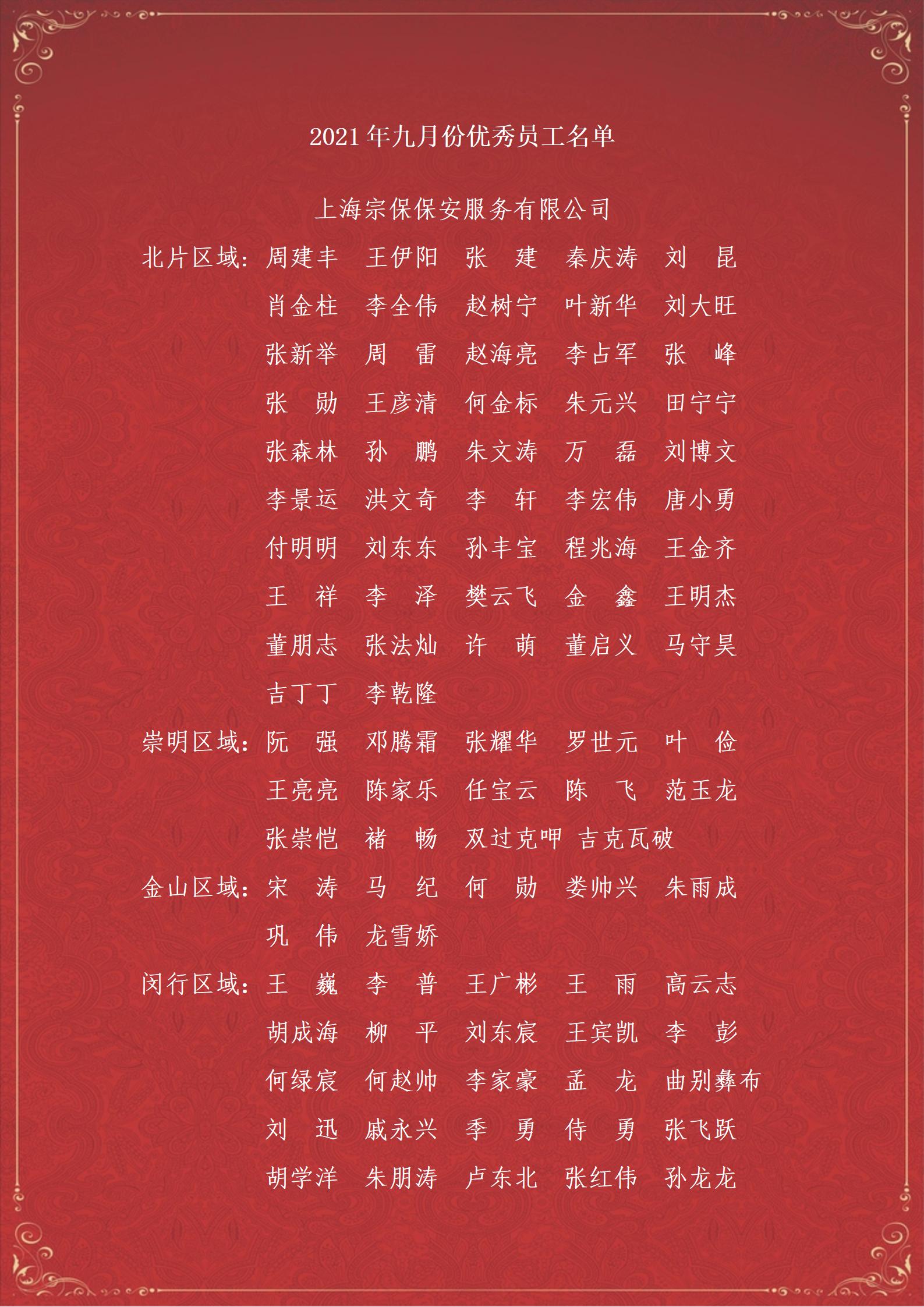 九月份,公司廣大員工發(fā)揚“特別能吃苦,特別能戰斗”的宗保人精神,落實(shí)工作要求,嚴守工作紀律,以過(guò)硬的綜合素質(zhì)、優(yōu)質(zhì)的服務(wù)保障,較好地完成了公司承接的各項工作任務(wù)。期間,涌現出了一批以公司為家、忘我工作、盡心履責表現突出的員工。