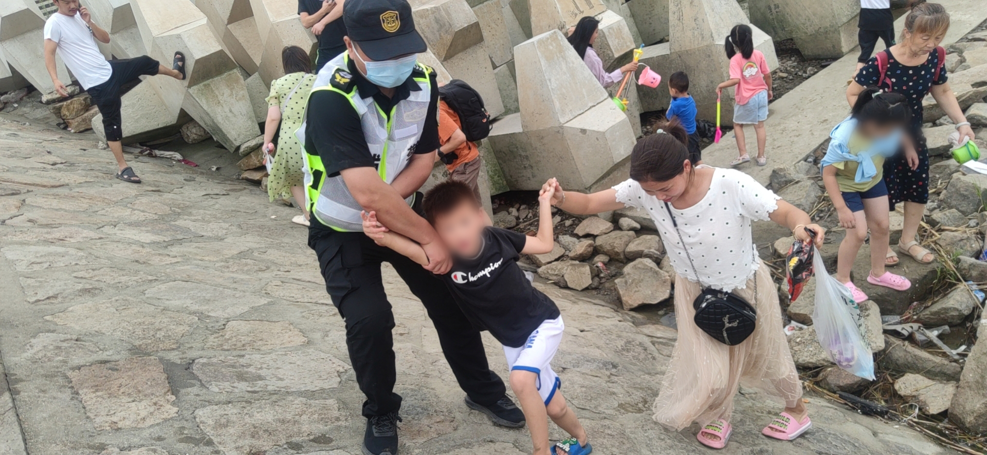 海堤邊當市民游客盡情玩耍享受著(zhù)清涼時(shí),宗保員工們則頂著(zhù)炎炎烈日值守著(zhù),他們仔細地巡察著(zhù)海堤,關(guān)注著(zhù)突發(fā)情況,不厭其煩地提醒著(zhù)市民游玩時(shí)注意安全。