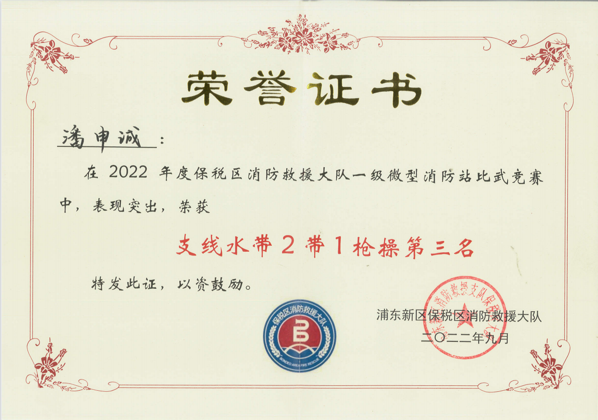 9月28日,宗保公司員工參加2022年度浦東新區保稅區消防救援大隊一級微型消防站比武競賽,經(jīng)過(guò)激烈角逐,公司參賽員工不畏強手、力爭上游,最終在多項比賽活動(dòng)中榮獲佳績(jì),展現了公司員工過(guò)硬的業(yè)務(wù)技能,彰顯了公司員工進(jìn)取的精神風(fēng)采。
