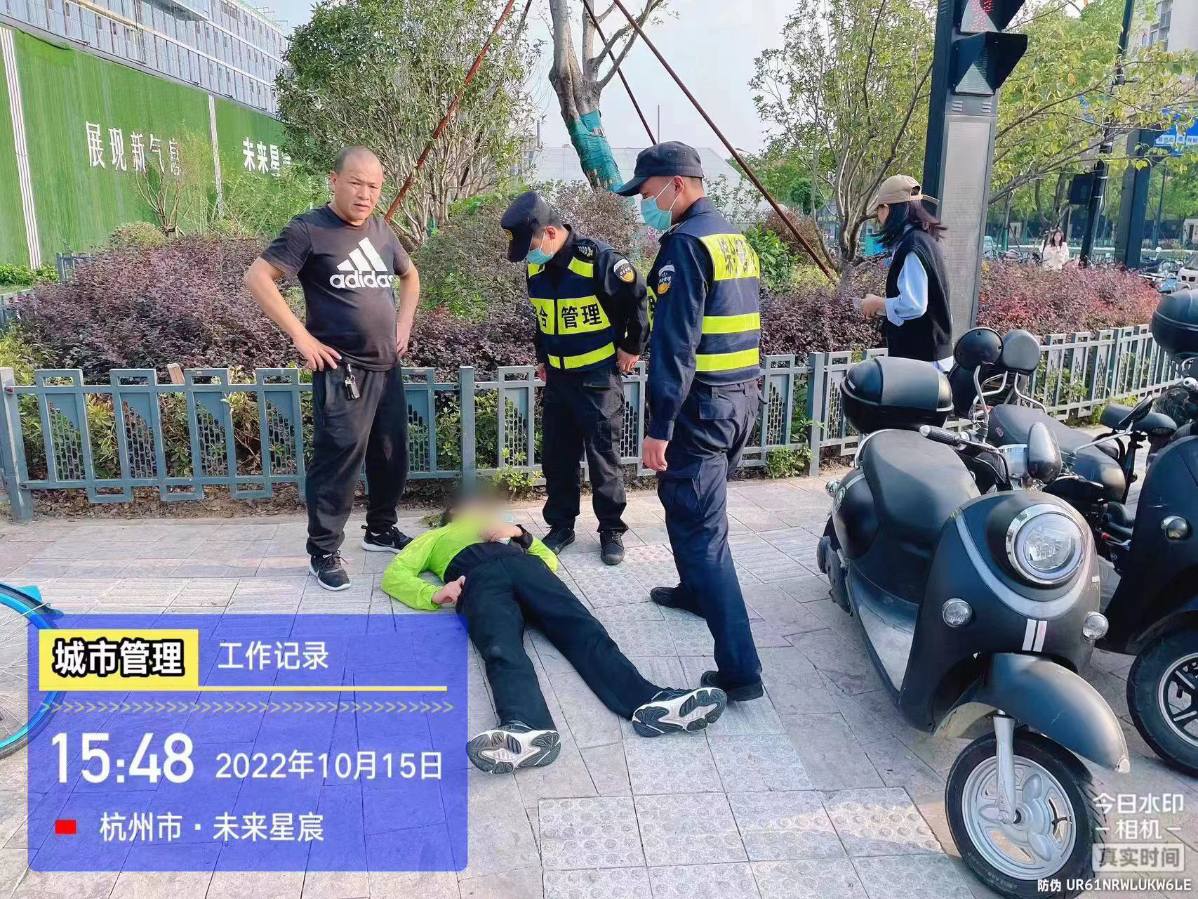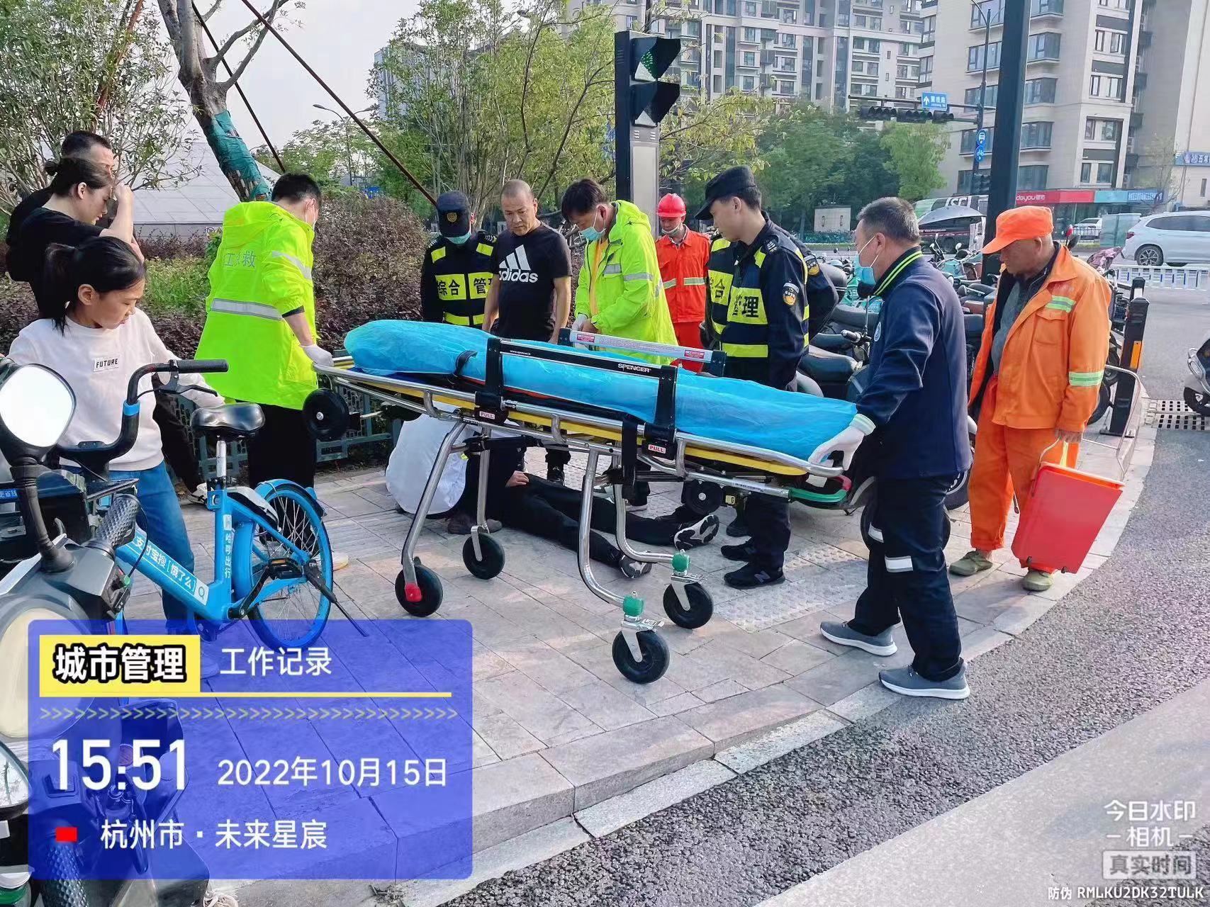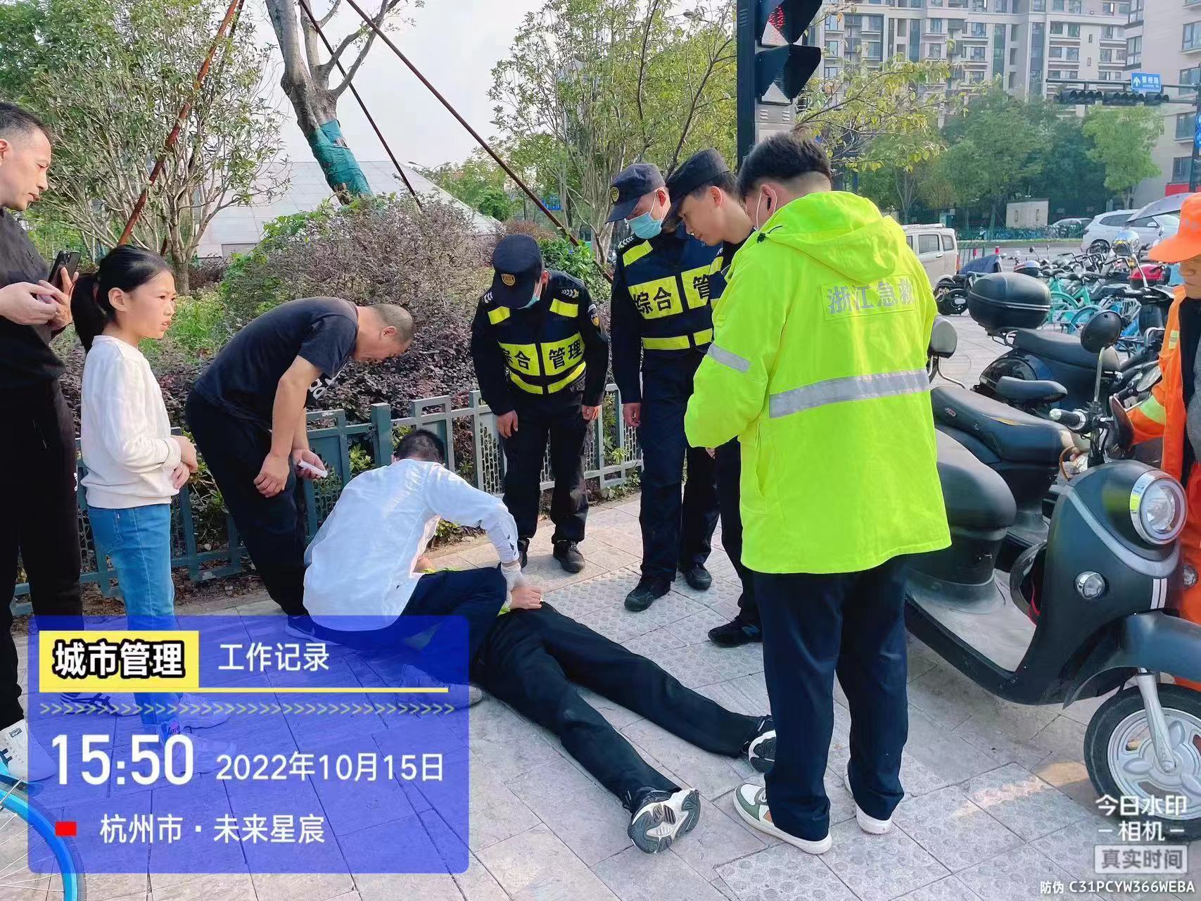 10月15日,浙江民泰公司駐杭州市余杭區五常市容項目員工熱心救助倒地男子。