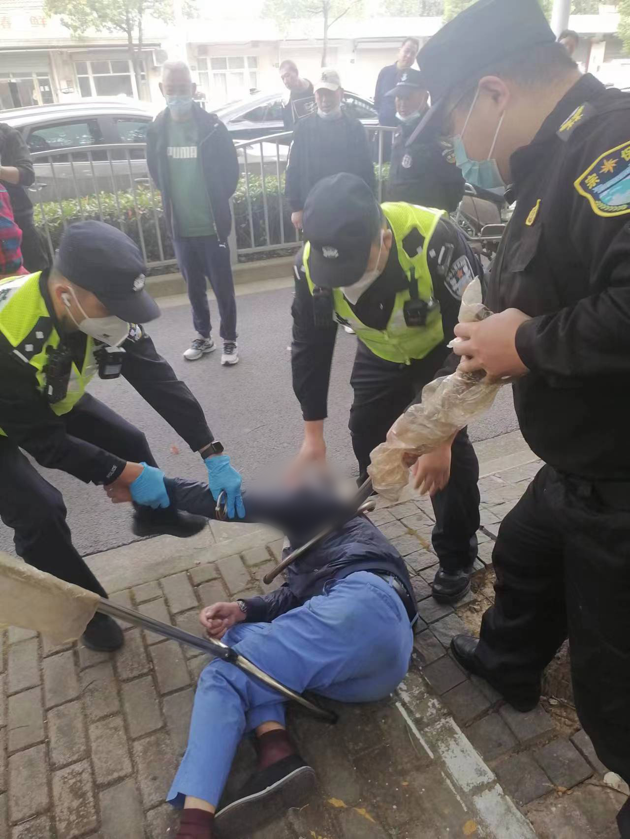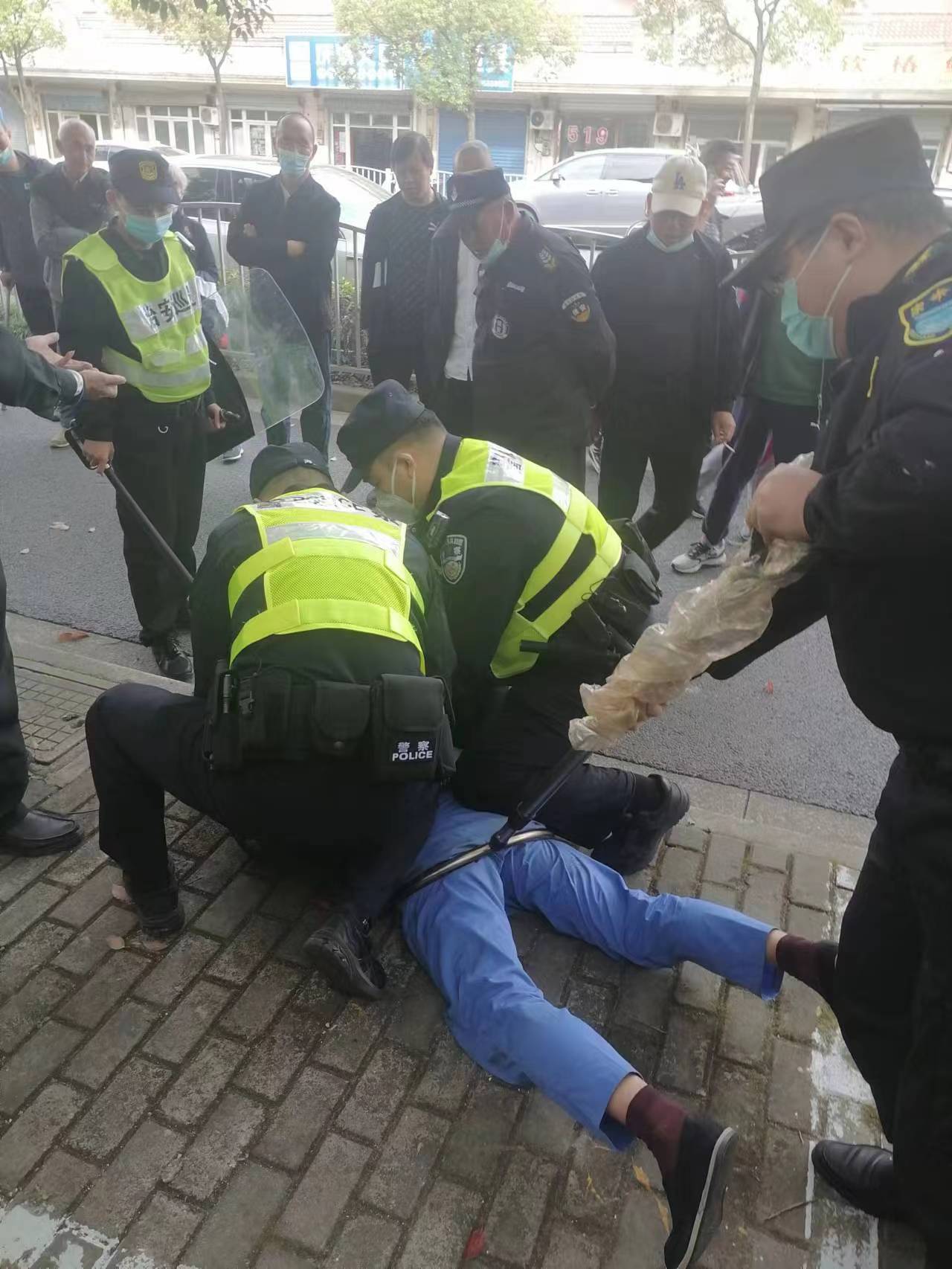 10月14日,宗保公司駐浦東新區合慶鎮網(wǎng)格項目員工協(xié)助控制持刀男子。