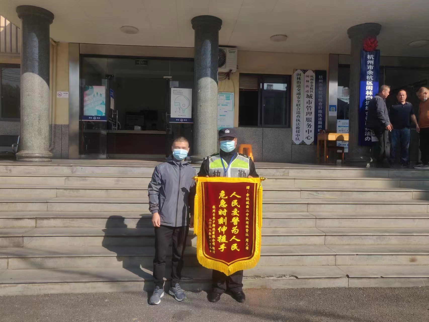 11月10日,浙江民泰公司駐杭州市余杭區閑林交管輔助項目員工收到杭州云木夕物流有限公司送來(lái)的一面繡有“人民交警為人民 危機時(shí)刻伸援手”的錦旗,感謝公司員工周大蔣拾金不昧的行為。