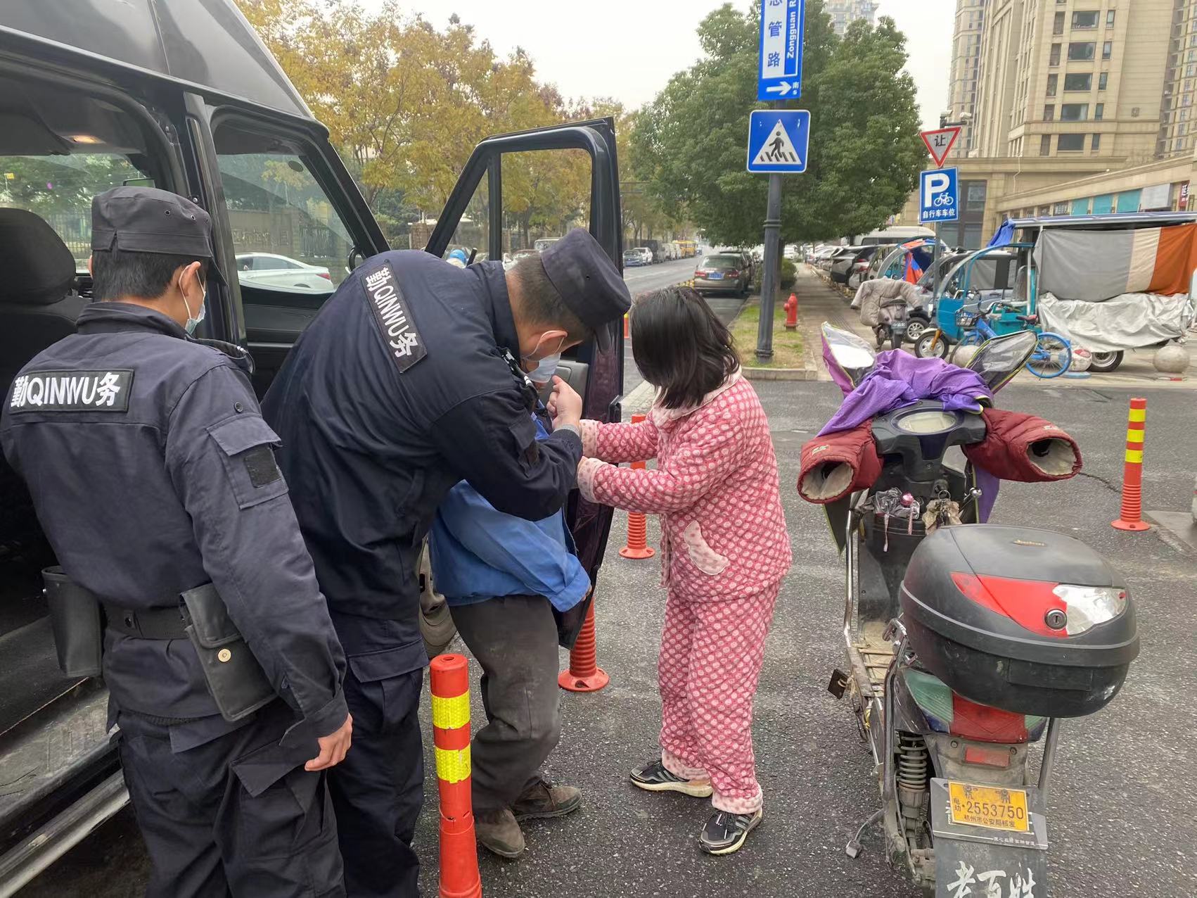 12月24日,浙江民泰公司駐杭州市余杭區閑林市容項目員工幫助摔倒老人。