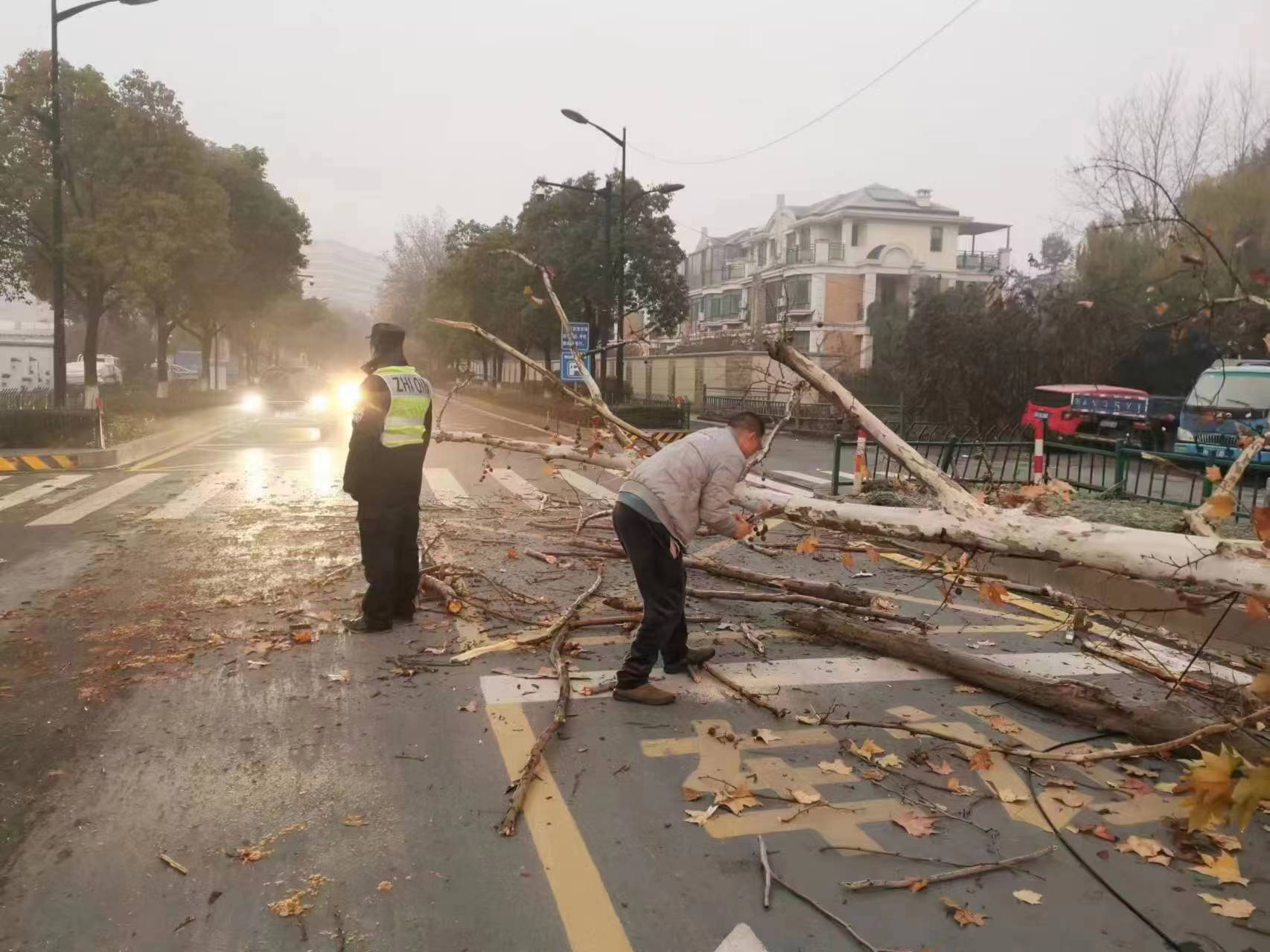 12月31日,浙江民泰公司駐杭州市余杭區五常市容項目員工協(xié)助清理倒地樹(shù)木。