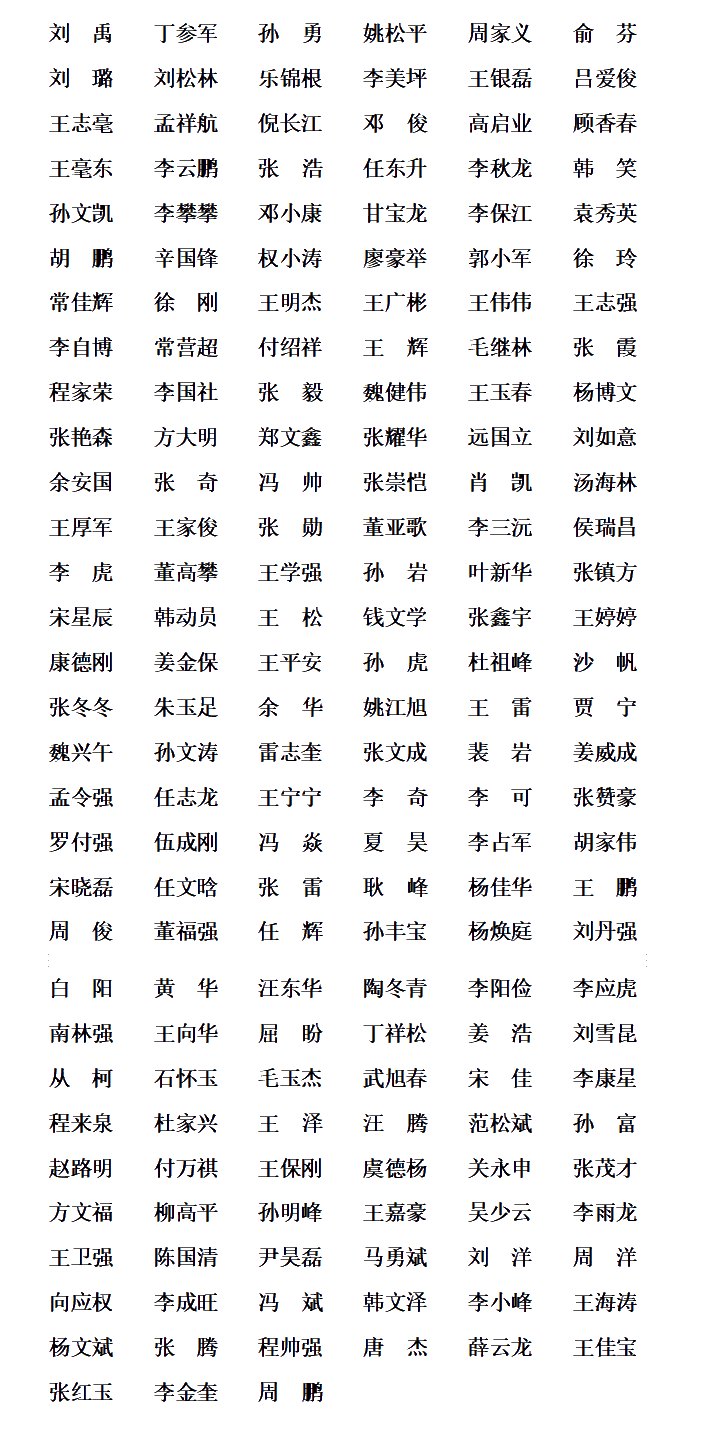 2022年度優(yōu)秀退役軍人員工(45名)