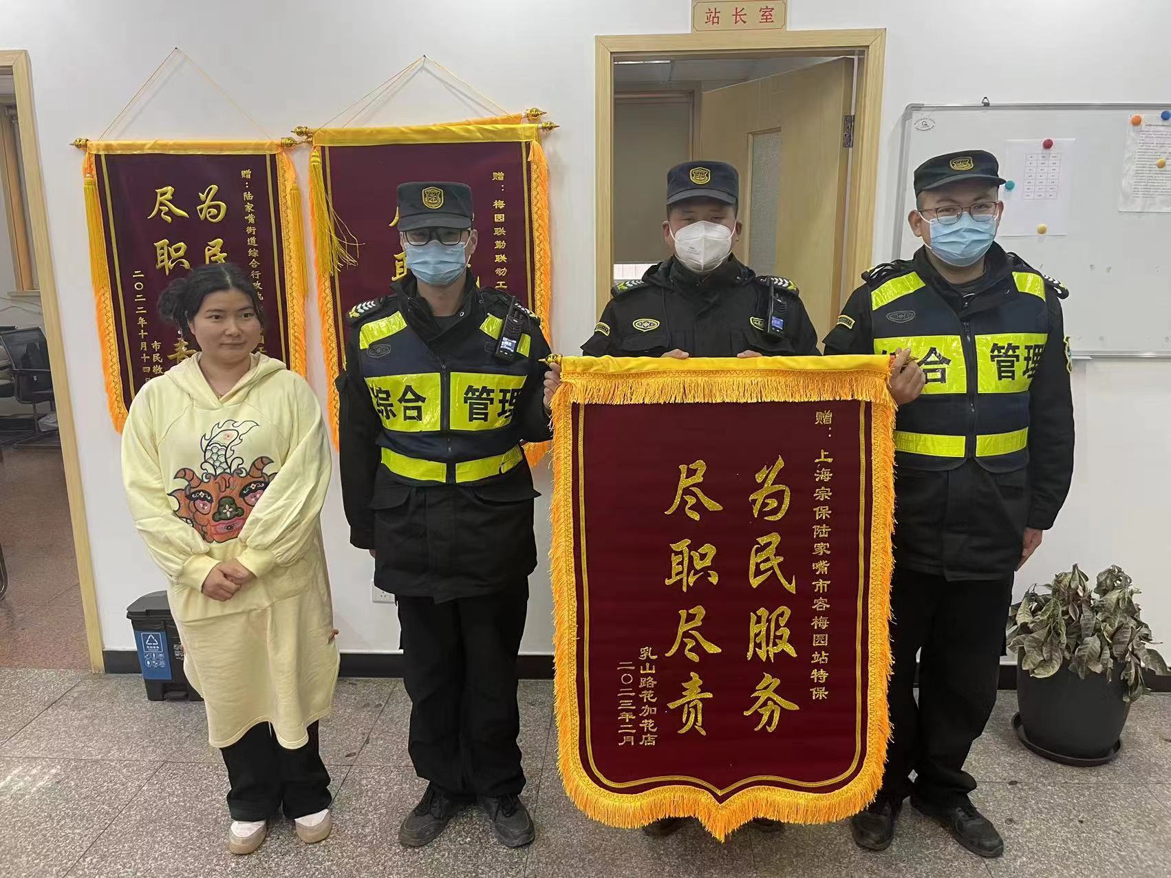 2月20日,宗保公司駐陸家嘴社區市容項目收到一花店店主送來(lái)的一面繡有“為民服務(wù) 盡職盡責”的錦旗,感謝宗保公司員工的溫情執法。