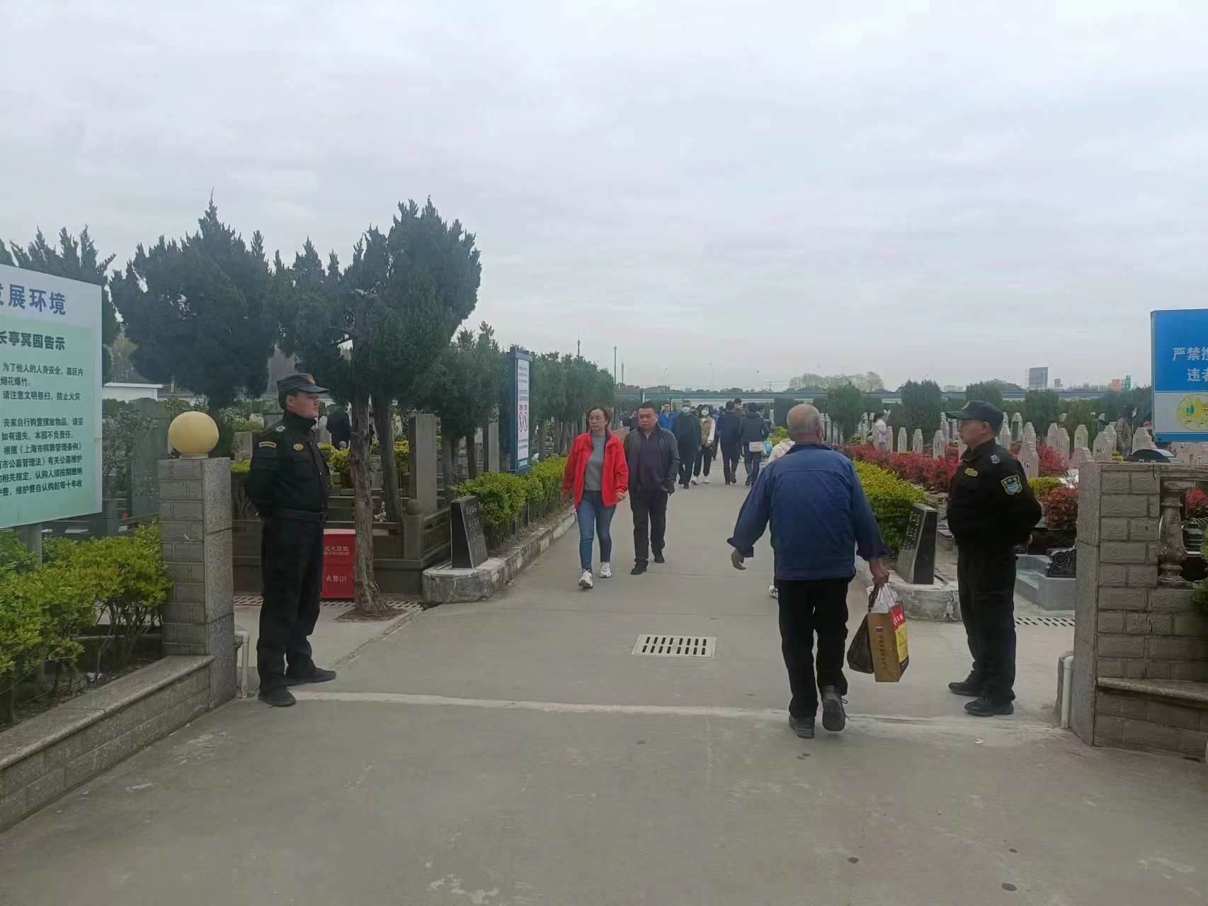 3月25日至4月5日為祭掃高峰期,宗保公司根據有關(guān)單位的部署和要求,全力以赴協(xié)助公墓陵園管理方做好清明祭掃秩序維護保障工作。 公司員工服從公司調度安排,提前進(jìn)入指定公墓陵園,堅守崗位,神情肅然,指揮車(chē)輛有序通行,勸導市民文明祭掃,不間斷巡查重點(diǎn)區域,及時(shí)排除安全隱患,嚴防祭掃引發(fā)火災,確保祭掃安全文明有序。
