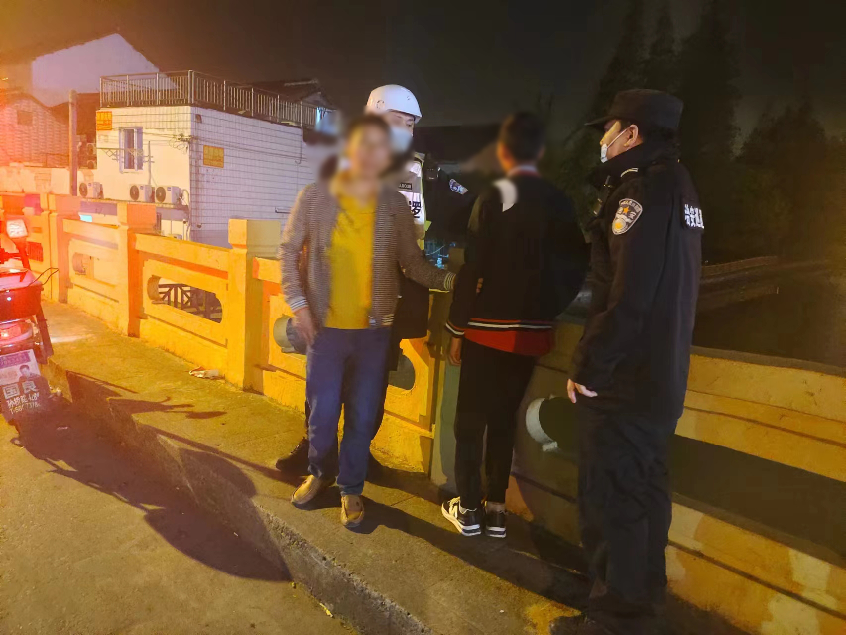 當日23:15,公司員工孫魁在三灶路與橫沔江路橋頭巡邏時(shí),聽(tīng)到有人在橋頭大聲呼叫“快來(lái)救救我家小孩,救救我家小孩,他要跳河,他要跳河......”