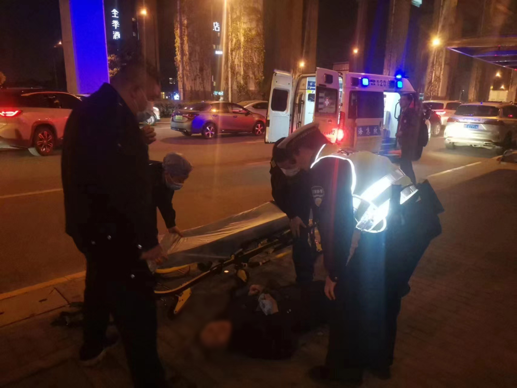 很快,120急救車(chē)來(lái)到事發(fā)現場(chǎng),高昌炎幫助醫護人員將老人抬上救護車(chē)送往醫院救治。