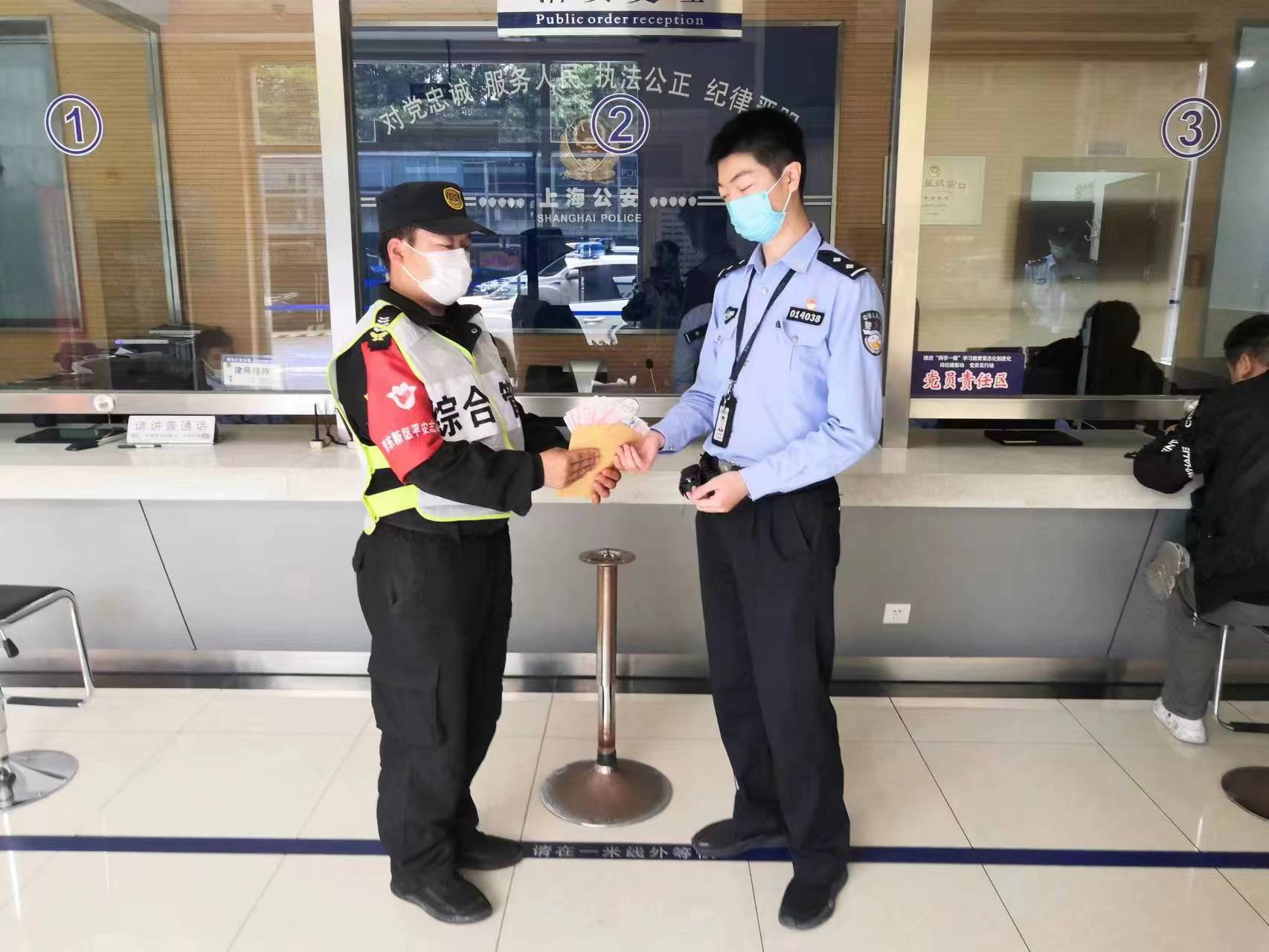 很快,班組長(cháng)趕到現場(chǎng),并帶領(lǐng)吉許可趕往陸家嘴治安派出所,將現金交給值班民警。值班民警對宗保公司員工拾金不昧的行為給予了肯定和贊揚。