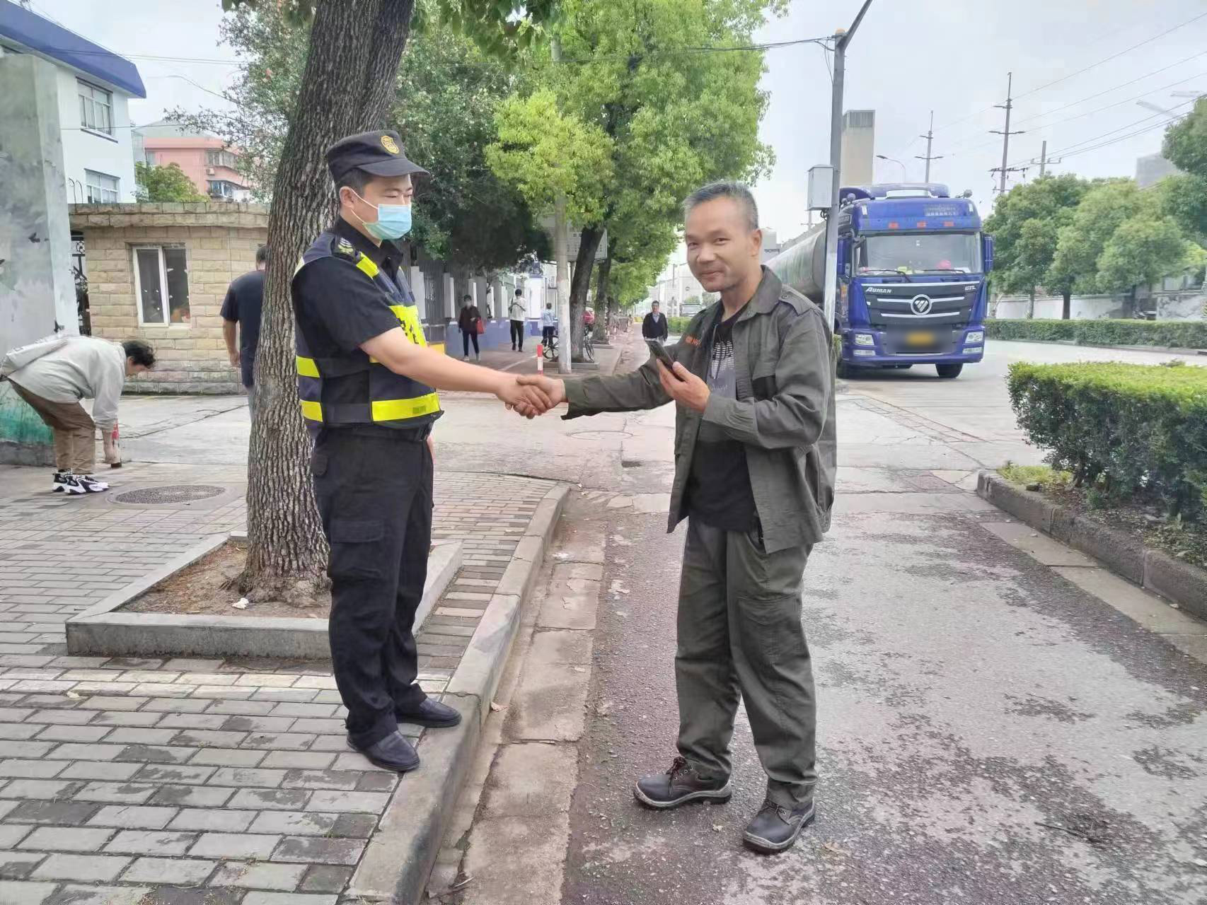 很快,一位男士來(lái)到約定的地點(diǎn)。陳鎮確認其是失主后,將手機交還給了他。該男士拿著(zhù)手機,連聲向民泰公司員工表示感謝。