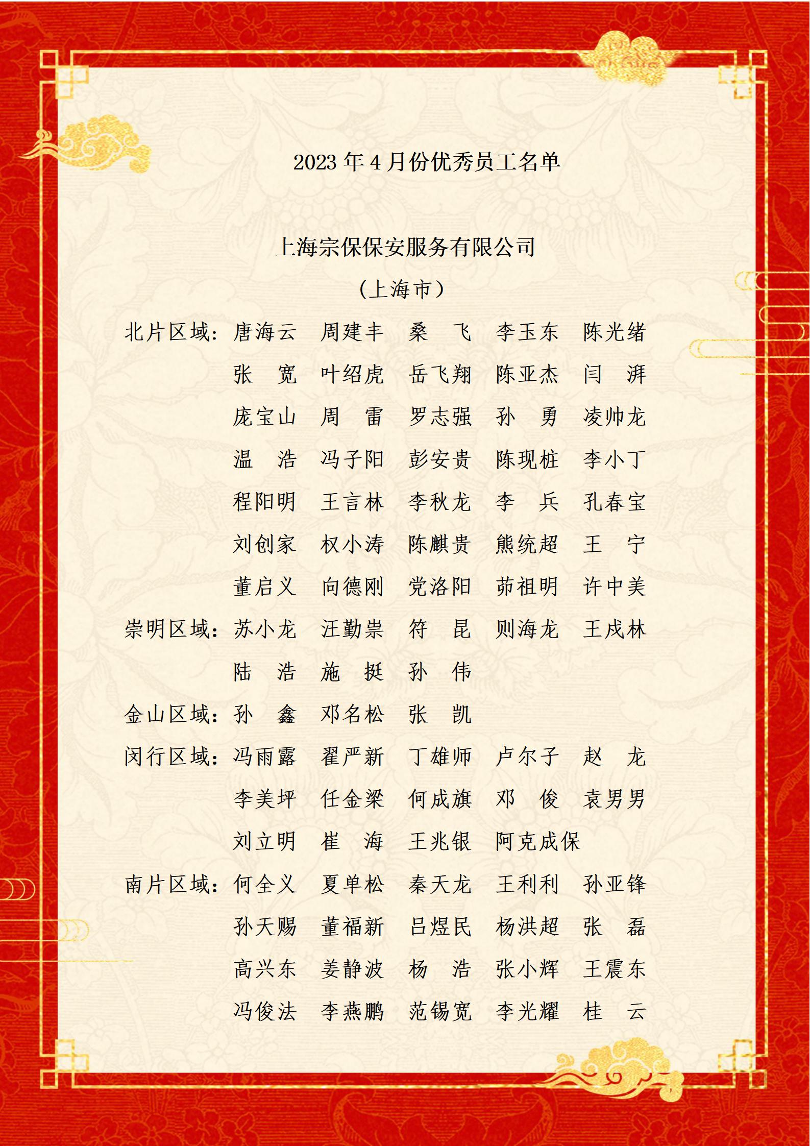 4月份,公司廣大員工根據甲方的任務(wù)要求,按照公司的安排部署,發(fā)揚嚴謹務(wù)實(shí)、勇挑重擔的工作作風(fēng),助力完成了清明祭掃期間秩序保障任務(wù)和金山區廊下鎮田野百花節之草坪風(fēng)箏嘉年華活動(dòng)臨保任務(wù),全力配合甲方做好了城市管理輔助、治安巡邏聯(lián)防、物業(yè)服務(wù)保障、生態(tài)環(huán)境保護、高鐵線(xiàn)路巡防等工作。期間,涌現出了一批盡心履責、崗位建功、拾金不昧、熱心助人的優(yōu)秀員工和先進(jìn)典型。