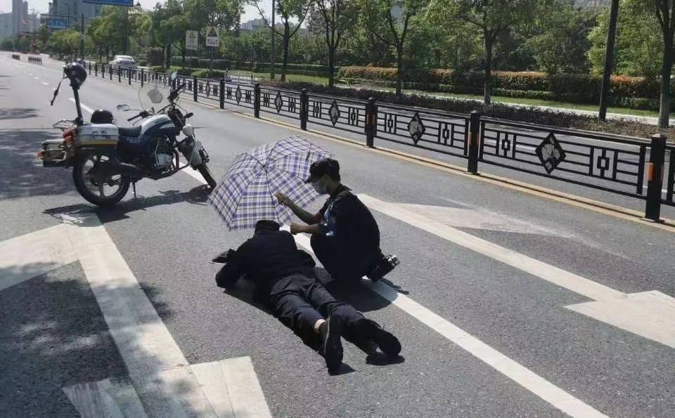 因太陽(yáng)照射厲害,細心的周樂(lè )邦從巡邏車(chē)上找來(lái)一把遮陽(yáng)傘,蹲著(zhù)為老人撐起一片“陰涼”。120急救車(chē)趕到后,周樂(lè )邦才站起來(lái)又協(xié)助醫護人員將老人抬上車(chē)。同時(shí),根據老人提供的信息,又聯(lián)系到老人的家屬告知了相關(guān)情況。