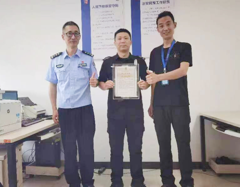 6月2日,浙江民泰公司駐杭州市臨平區星橋派出所輔助項目收到由臨平區公安分局孫琦局長(cháng)簽發(fā)的128號《局長(cháng)表?yè)P令》,對公司員工宋亮機警認真、沉著(zhù)冷靜,妥善處置突發(fā)事件的優(yōu)異表現給予表?yè)P。