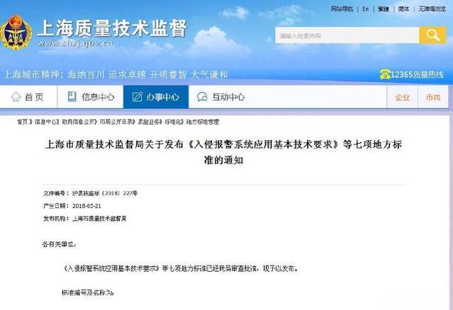 摘要:近日,從上海市質(zhì)量技術(shù)監督局獲悉,《入侵報警系統應用基本技術(shù)要求》、《住宅小區智能安全技術(shù)防范系統要求(代替DB31/T294-2010)》兩項上海市地方標準發(fā)布,兩項標準將與2018年8月1日正式實(shí)施。