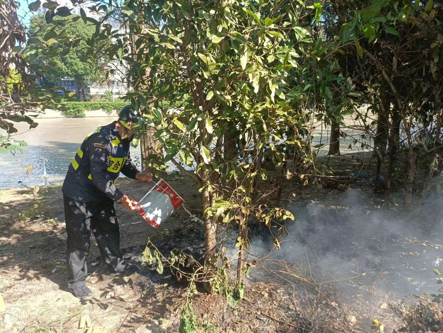 10月21日9:30,宗保公司駐浦東新區三林市容項目員工單野和趙樹(shù)寧在三林鎮楊新路小花園巡查時(shí),發(fā)現河邊雜草冒煙起火。兩人立即跑到附近居民家中,借來(lái)水桶提水滅火。經(jīng)過(guò)十幾分鐘的撲救,野火被撲滅,避免了火勢進(jìn)一步擴大和蔓延。