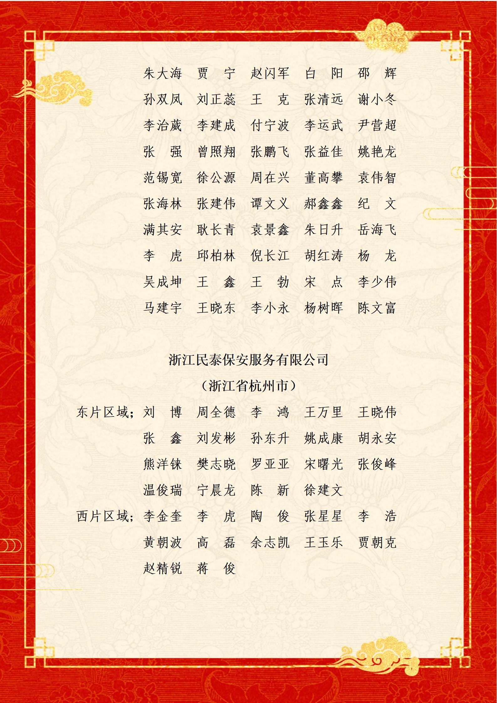 10月份,公司廣大員工根據甲方的任務(wù)要求,按照公司的部署安排,持續發(fā)揚勇于擔當、積極作為的工作作風(fēng),助力完成了杭州第19屆亞洲運動(dòng)會(huì )、杭州第四屆亞洲殘疾人運動(dòng)會(huì )、2023年環(huán)崇明島國際自盟女子公路世界巡回賽等大型活動(dòng)安保任務(wù),協(xié)助做好了中秋國慶雙節等安保工作,配合甲方做好了城市管理輔助、治安巡邏聯(lián)防、物業(yè)服務(wù)保障、生態(tài)環(huán)境保護、高鐵線(xiàn)路巡防等工作。期間,涌現出了一批盡心履責、崗位建功、拾金不昧、熱心助人的優(yōu)秀員工和先進(jìn)典型。
