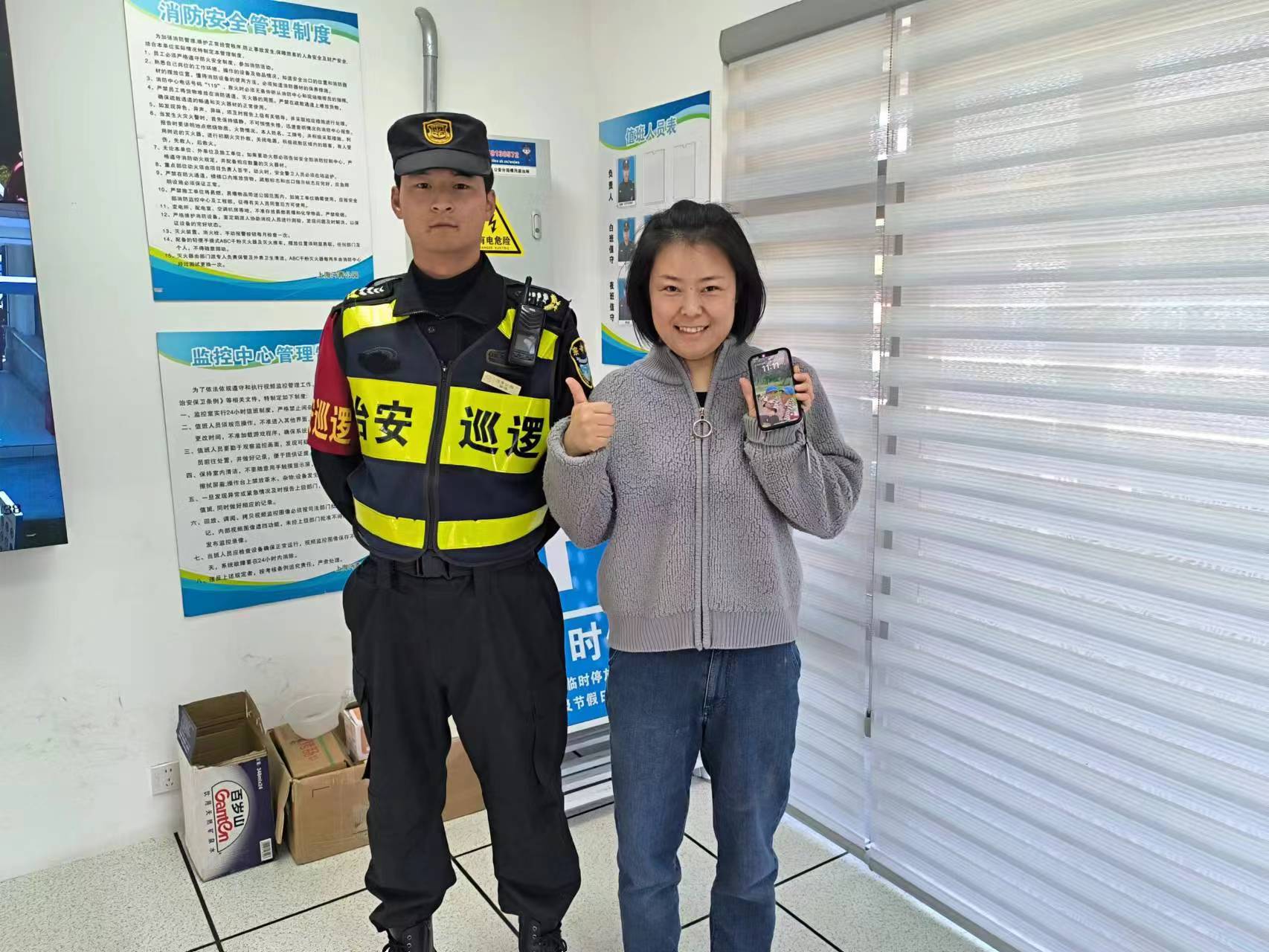 11月21日11:00,宗保公司駐浦東新區沔青公園員工王飛帆在值勤時(shí),撿到一部蘋(píng)果手機,隨即將情況報告了帶隊隊長(cháng),并按指示將手機送到公園監控室。同時(shí),王飛帆將撿到手機的消息發(fā)布在工作群,請在崗位值勤的同事幫忙留意失主。大概過(guò)了十幾分鐘,同事孫克看到一位女士邊走邊看,像在尋找什么東西,便主動(dòng)上前詢(xún)問(wèn)。女士說(shuō)自己的手機在公園掉了,孫克詢(xún)問(wèn)了女士手機的品牌、顏色等信息,隨后告訴女士到公園監控室認領(lǐng)。該女士很快趕到監控室,成功解鎖手機密碼確認其是失主后,等在監控室的王飛帆將手機交還給了她。女士拿到手機很高興,連連向宗保員工王飛帆道謝。