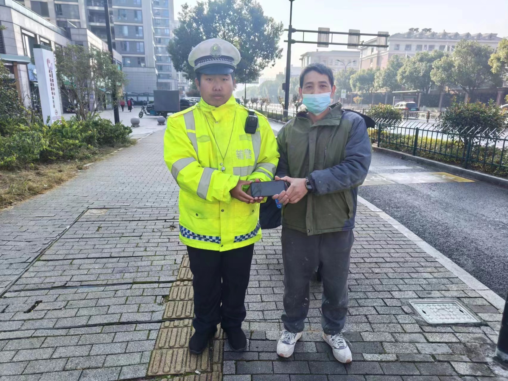 12月5日8:40,浙江民泰公司駐杭州市余杭區閑林交管輔助項目員工房景紅在上和路閑富北路交叉口值勤時(shí),撿到一部OPPO手機,報告當班組長(cháng)后便在原地等待失主。大約過(guò)了30分鐘左右,一位男子打來(lái)電話(huà)尋找手機。房景紅與他約好碰面時(shí)間地點(diǎn)。很快,一男子趕到現場(chǎng),經(jīng)核實(shí)確認其是失主后,房景紅將手機交還給了他。