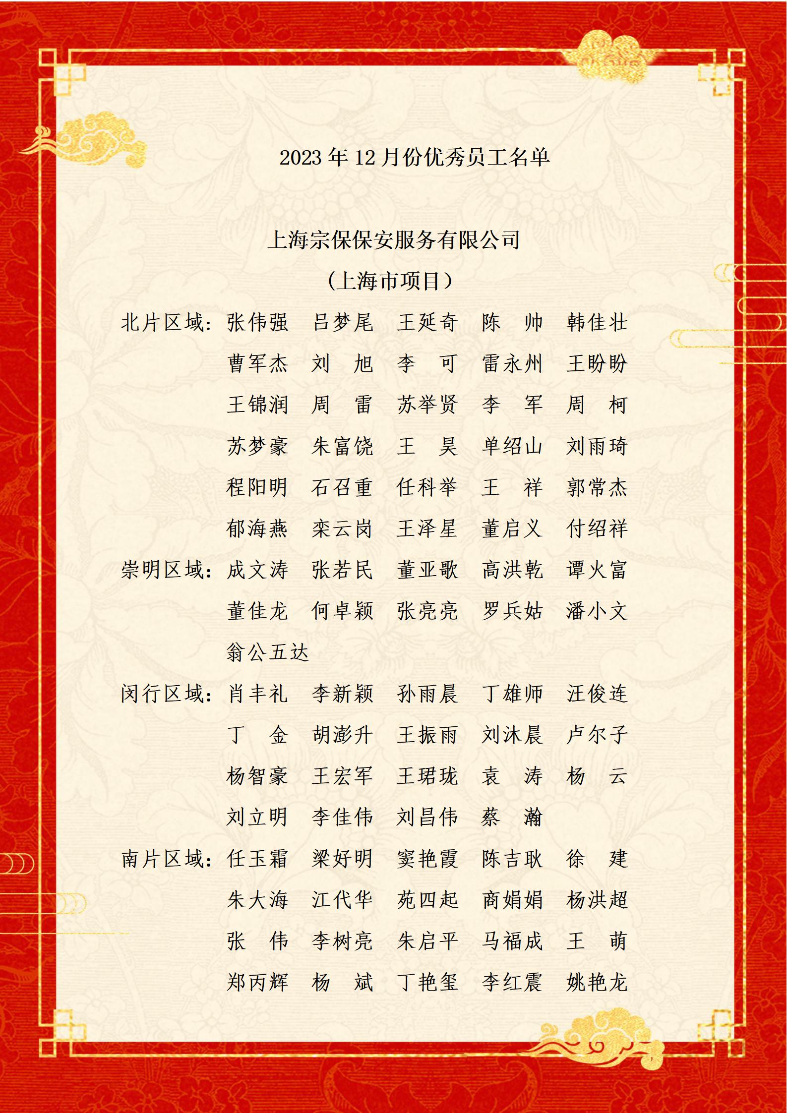 為表彰先進(jìn),樹(shù)立典型,激勵后進(jìn),在各項目推薦,各部門(mén)審核把關(guān)的基礎上,經(jīng)公司董事會(huì )研究,決定對12月份工作表現優(yōu)異的張偉強等145名優(yōu)秀員工,予以通報表彰獎勵(獎金已隨12月份工資發(fā)放)。