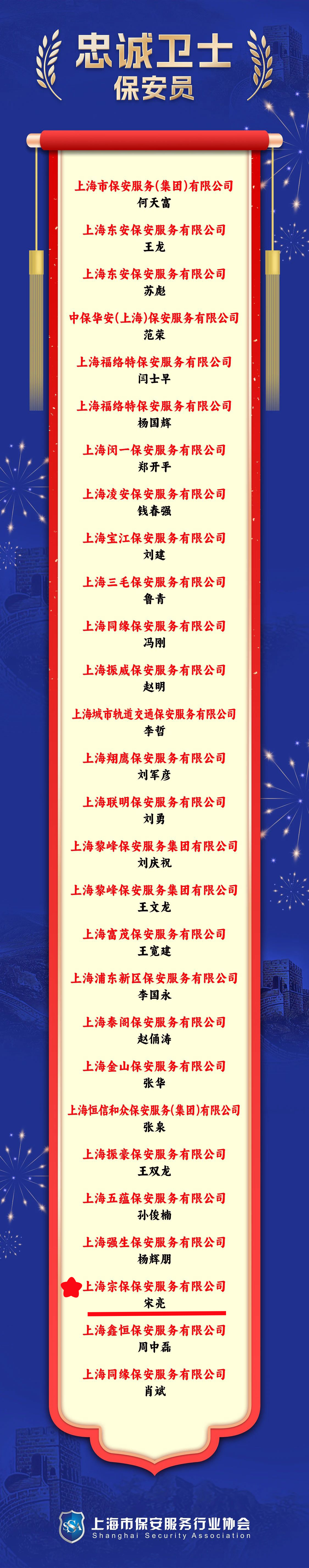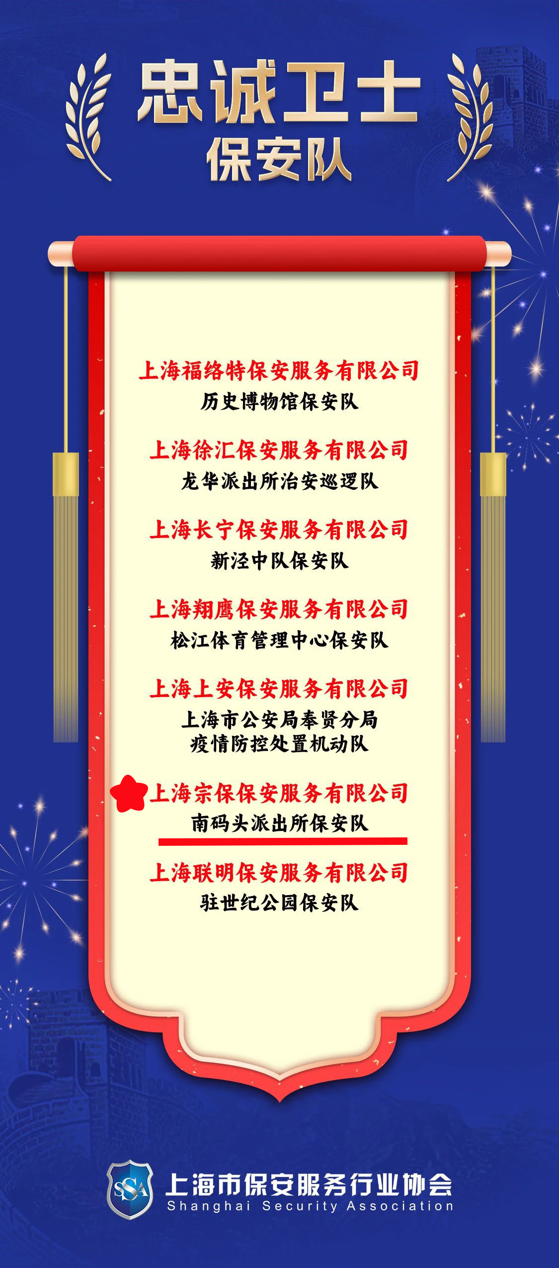 近日,上海市保安服務(wù)行業(yè)協(xié)會(huì )公布了2023年度“忠誠衛士”評選結果,宗保公司1個(gè)保安隊和1名員工分獲殊榮。