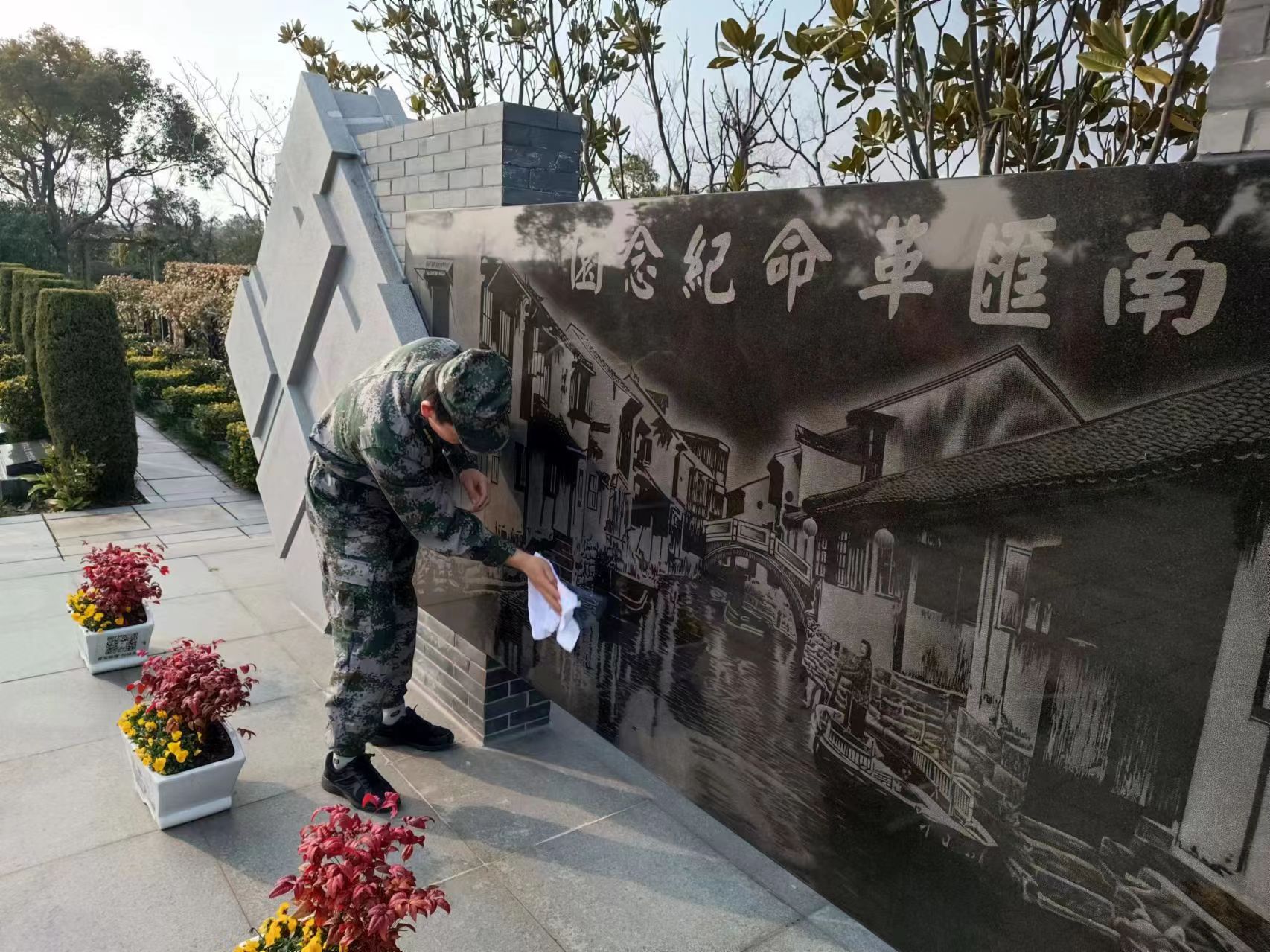 隨后,公司退役軍人員工志愿者手拿抹布認真、仔細地擦拭著(zhù)每座紀念碑、烈士事跡碑,清除周?chē)s草,清掃落葉雜物,用實(shí)際行動(dòng)守護莊嚴肅穆的烈士長(cháng)眠之地。大家表示將以先烈們?yōu)榘駱?,繼承和發(fā)揚雷鋒精神,為助力服務(wù)經(jīng)濟社會(huì )發(fā)展貢獻力量。