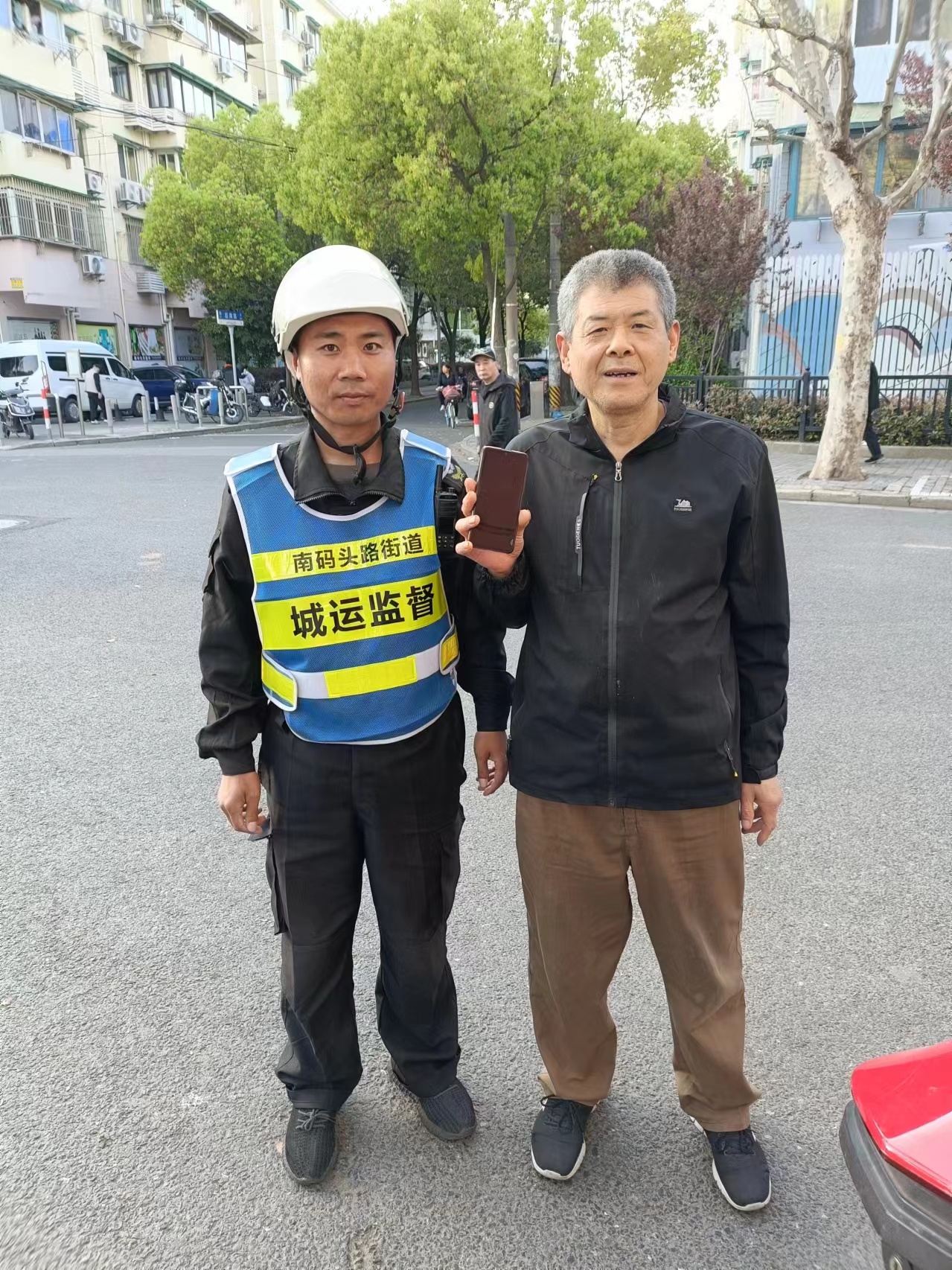 4月2日11:45,宗保公司駐浦東新區南碼頭城運網(wǎng)格項目員工陳安生巡查至高科西路齊恒路路口時(shí),撿到一部華為手機,報告組長(cháng)后便在原地邊巡查邊等待失主。約過(guò)了1個(gè)小時(shí),一位說(shuō)話(huà)遲緩、自稱(chēng)是失主的男子打來(lái)電話(huà)。陳安生聽(tīng)其口氣,像是一位老人,了解情況后就與老人約定碰面地點(diǎn),但老人表示自己不熟悉路,怕找不到地方。得知這一情況,陳安生主動(dòng)提出將手機送過(guò)來(lái),隨即就根據老人提供的位置信息,找到了等在小區門(mén)口的老人,并把手機交還給了他。老人拿到手機十分高興,掏出100現金要塞給陳安生表示感謝,被陳安生婉言謝絕了。老人見(jiàn)陳安生執意不收,連連贊揚道謝。
