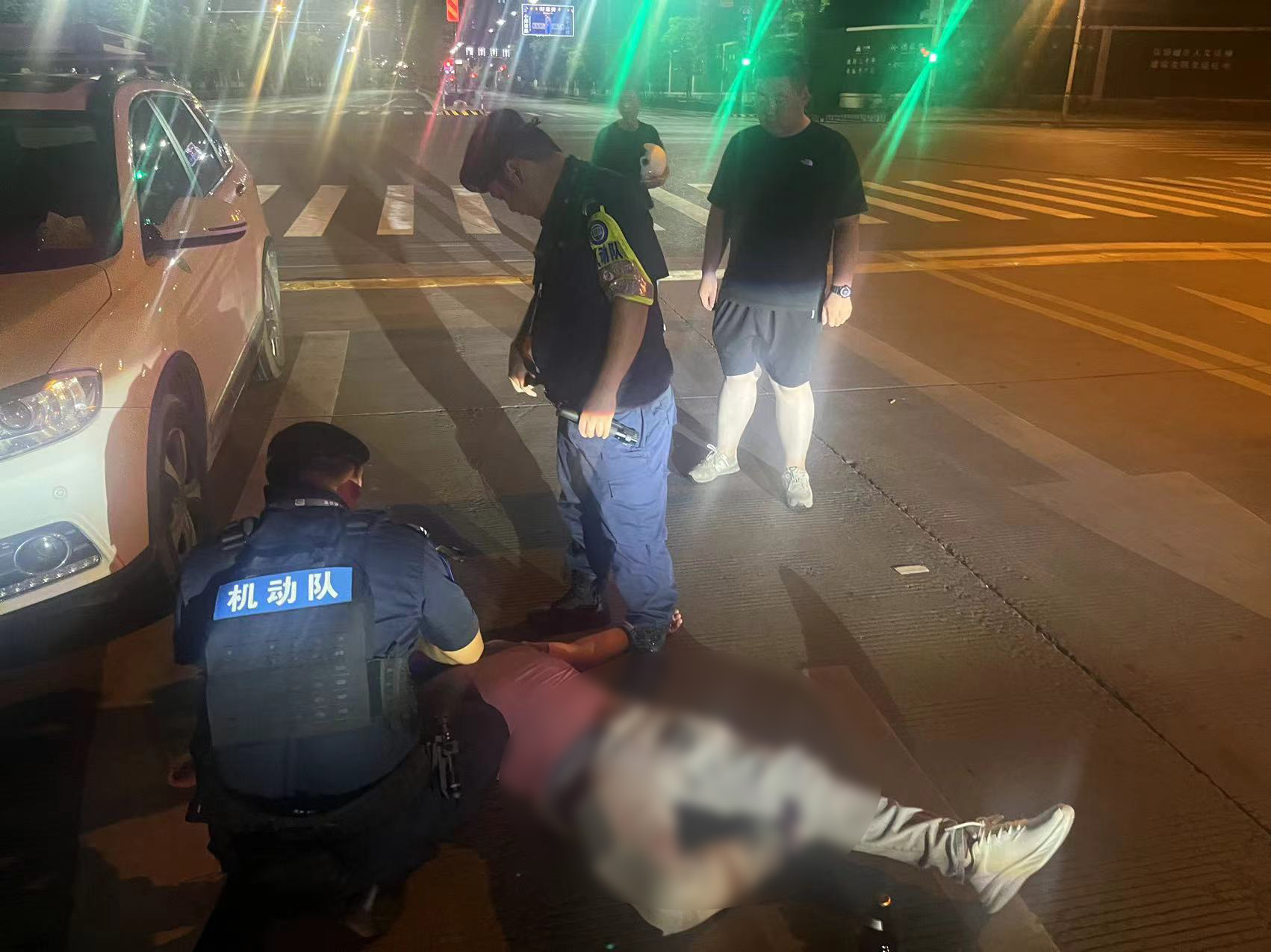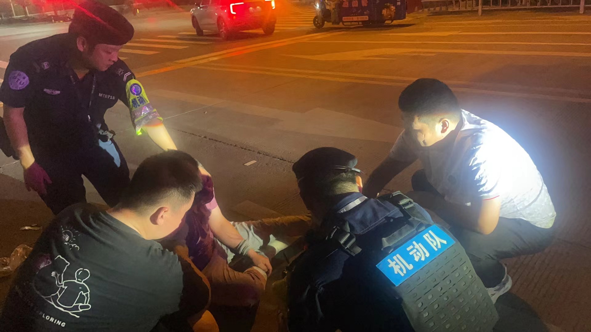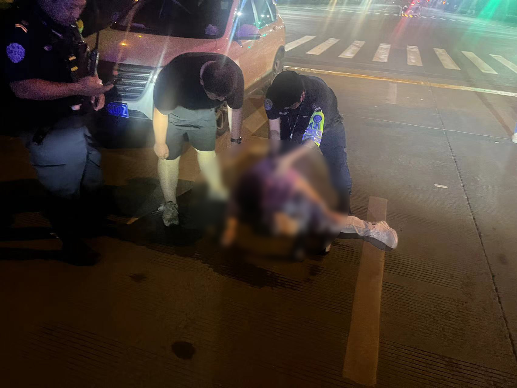 由于當時(shí)正值深夜燈光較暗,來(lái)往車(chē)輛多,容易發(fā)生危險,楊有福便向派出所報告了情況。派出所立即安排附近巡邏的輕裝3號車(chē)隊員肖平和派出所輔警汪權濱先趕至現場(chǎng)進(jìn)行支援。