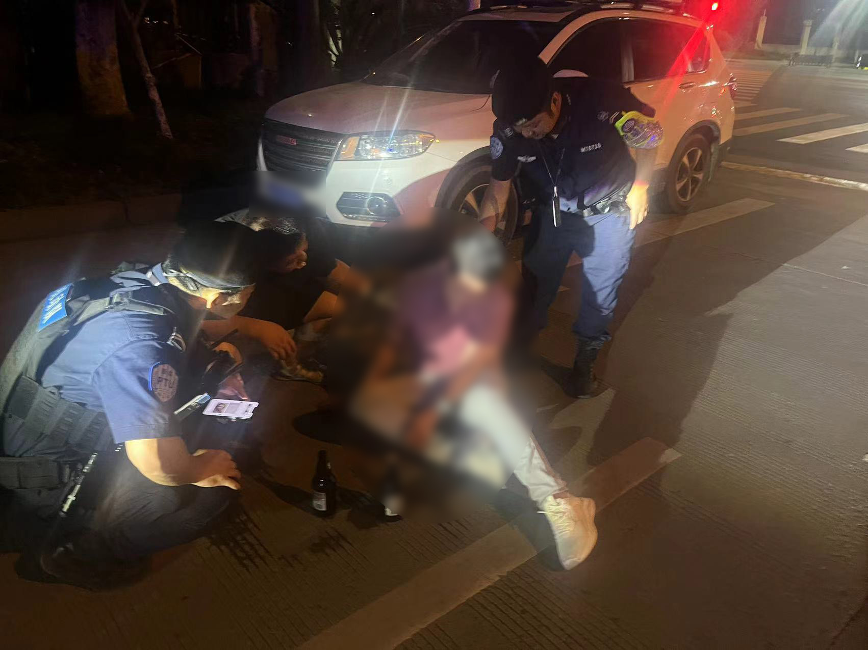 當日23:10,公司員工楊有福和秦曉東路過(guò)良渚街道廟長(cháng)橋路與良運街交叉口時(shí),發(fā)現一名男子躺在馬路上,就趕緊上前察看。男子散發(fā)著(zhù)濃烈的酒氣,身旁還放著(zhù)兩瓶啤酒,疑似處于醉酒狀態(tài)?!皫煾敌研?,師傅醒醒,醒醒......”無(wú)論兩人怎么呼叫,該男子始終沒(méi)有回應。