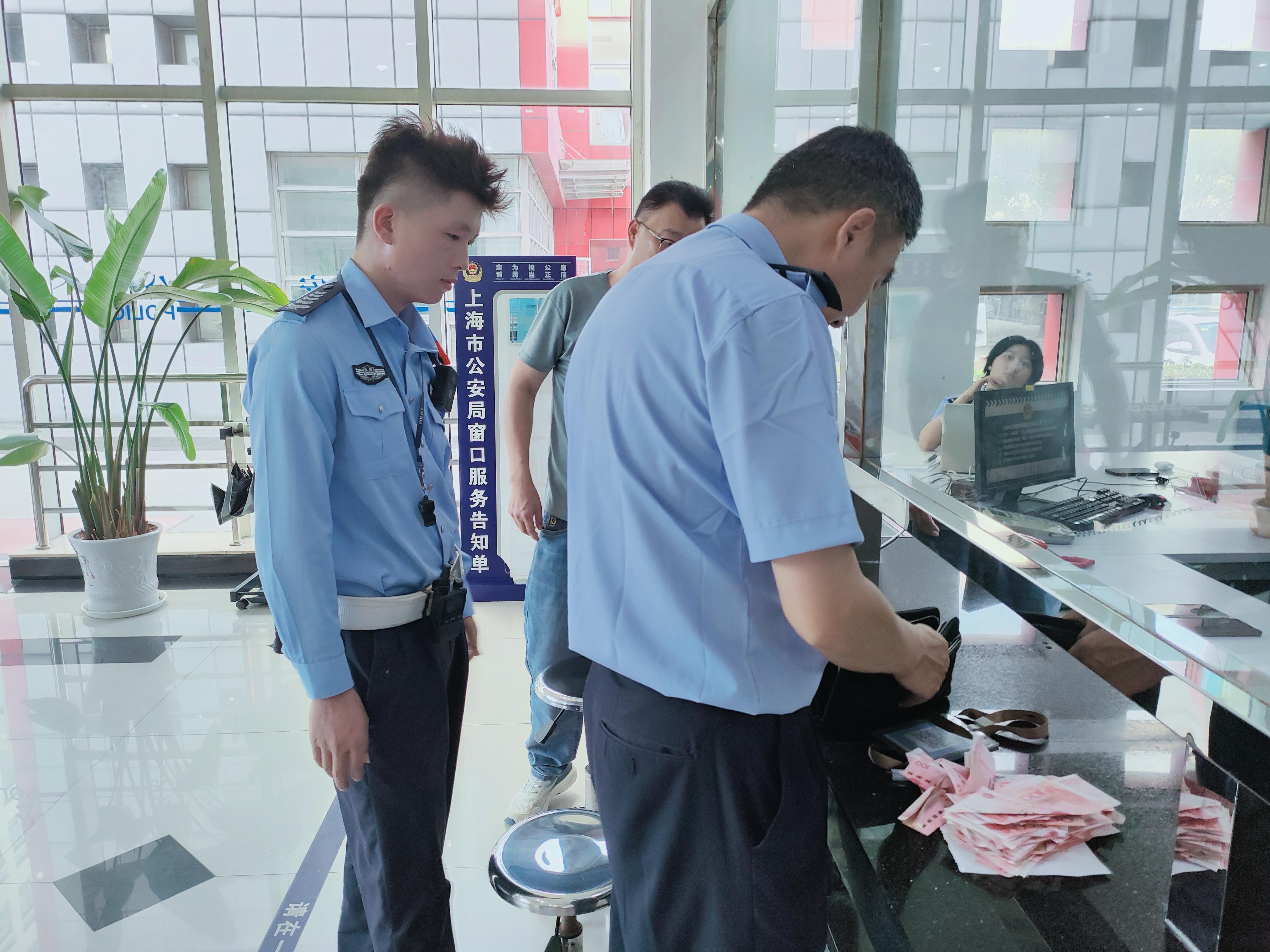 劉沐晨等了20分鐘左右,未見(jiàn)失主來(lái)尋找,便把黑色皮包、現金等物品一并送交到閔行區金都派出所。正當劉沐晨在派出所窗口登記信息時(shí),一名中年男子急匆匆地來(lái)報案,稱(chēng)一個(gè)裝著(zhù)大約九千到一萬(wàn)塊錢(qián)的黑色皮包丟了。