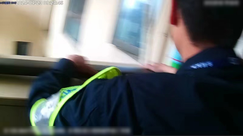 時(shí)間就是生命。公司員工凌邵凱觀(guān)察后決定從側面的窗戶(hù)爬進(jìn)廚房。他來(lái)不及做任何安全防護措施,面對12層樓的高度,不懼危險踩著(zhù)室外的空調外機,跨過(guò)1米多的懸空距離,爬上廚房窗臺進(jìn)到了屋內。