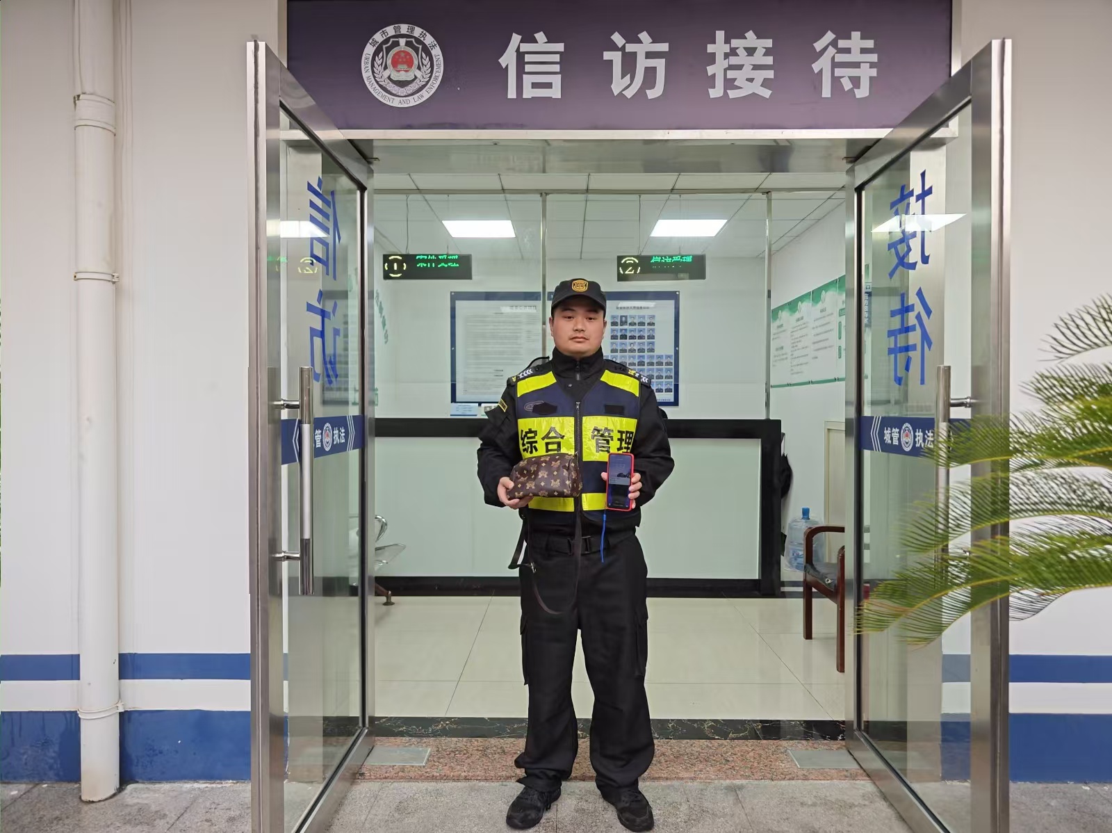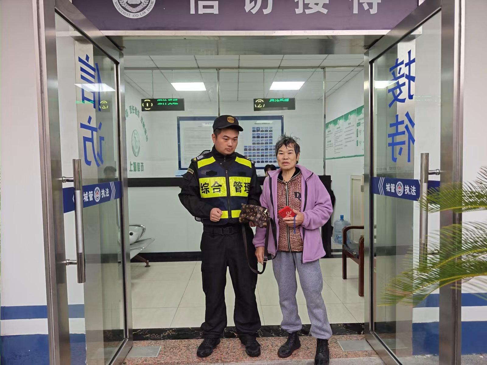 很快,一位女士急匆匆趕到周浦城管中隊,高順奎核實(shí)確認女士是失主后,就將挎包和物品交還給了女士。女士對高順奎拾金不昧的行為十分感激,連連道謝。