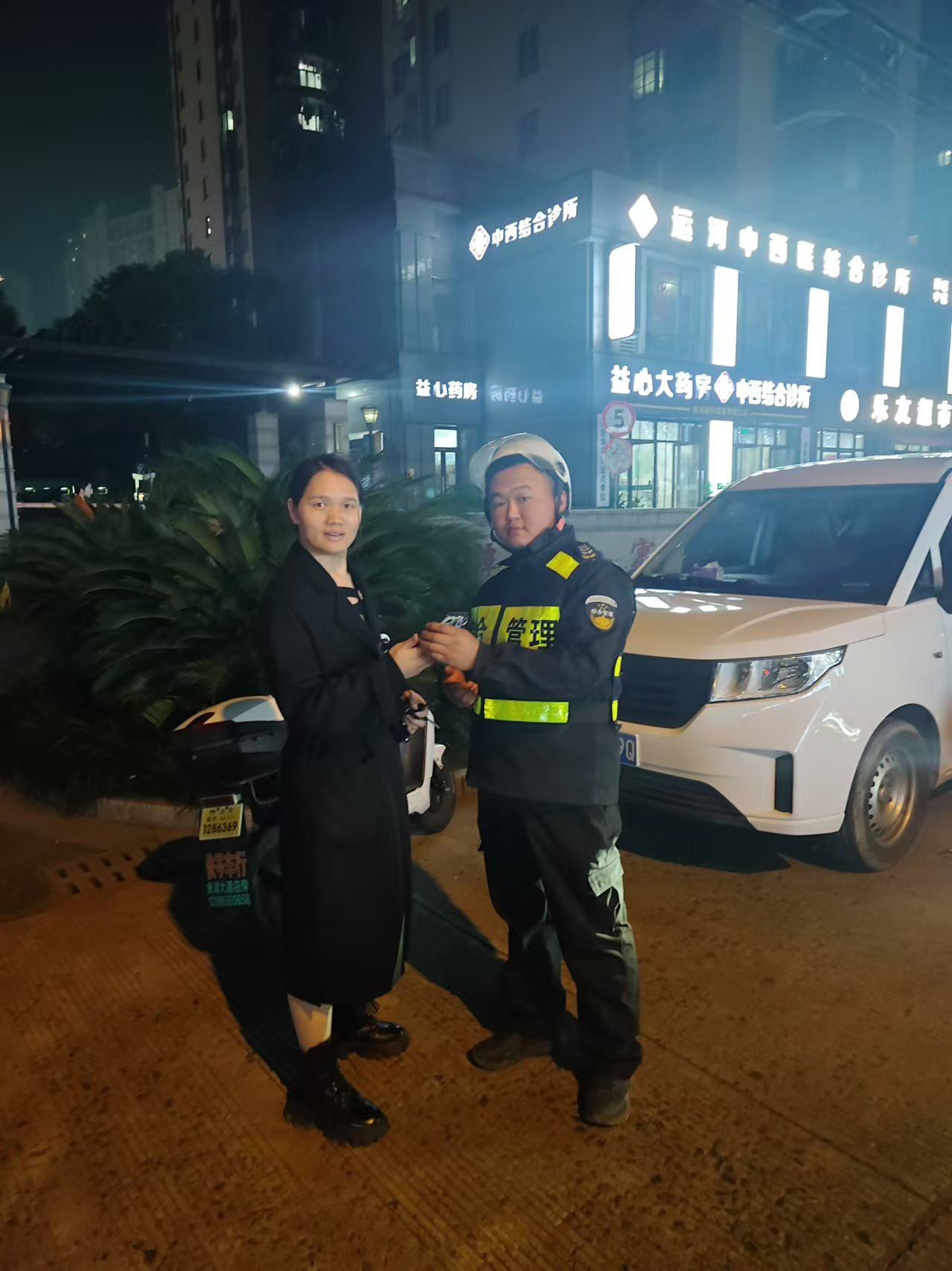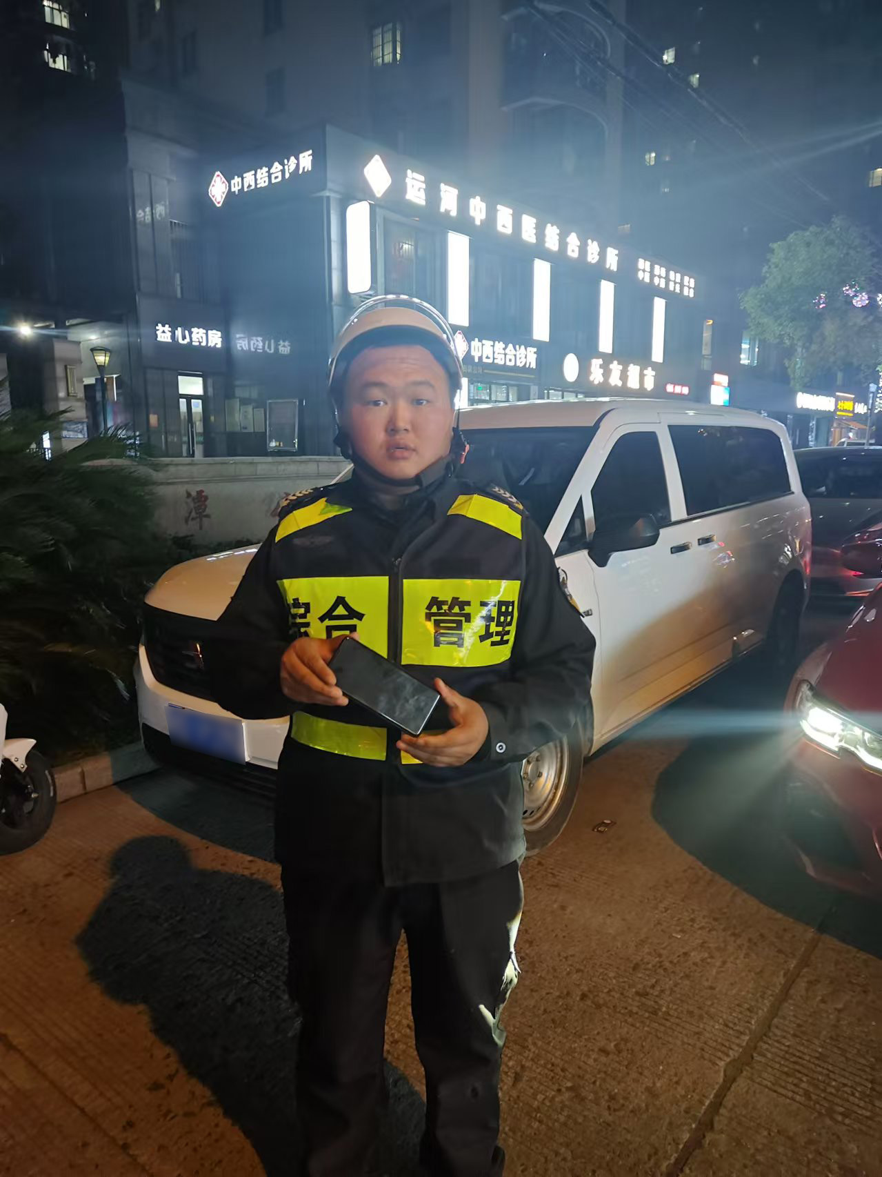 11月22日20:32,浙江民泰公司駐杭州市臨平區東湖市容項目員工張?chǎng)卧诤紮C路巡查時(shí),撿到一部OPPO手機,詢(xún)問(wèn)現場(chǎng)無(wú)人認領(lǐng)后,便將情況報告了當班組長(cháng),并按指示在原地等待失主。
