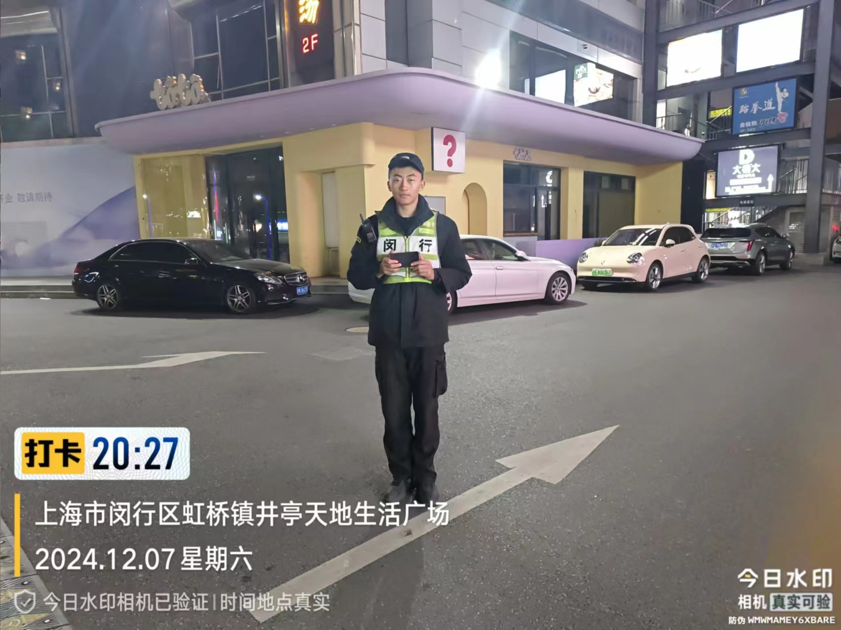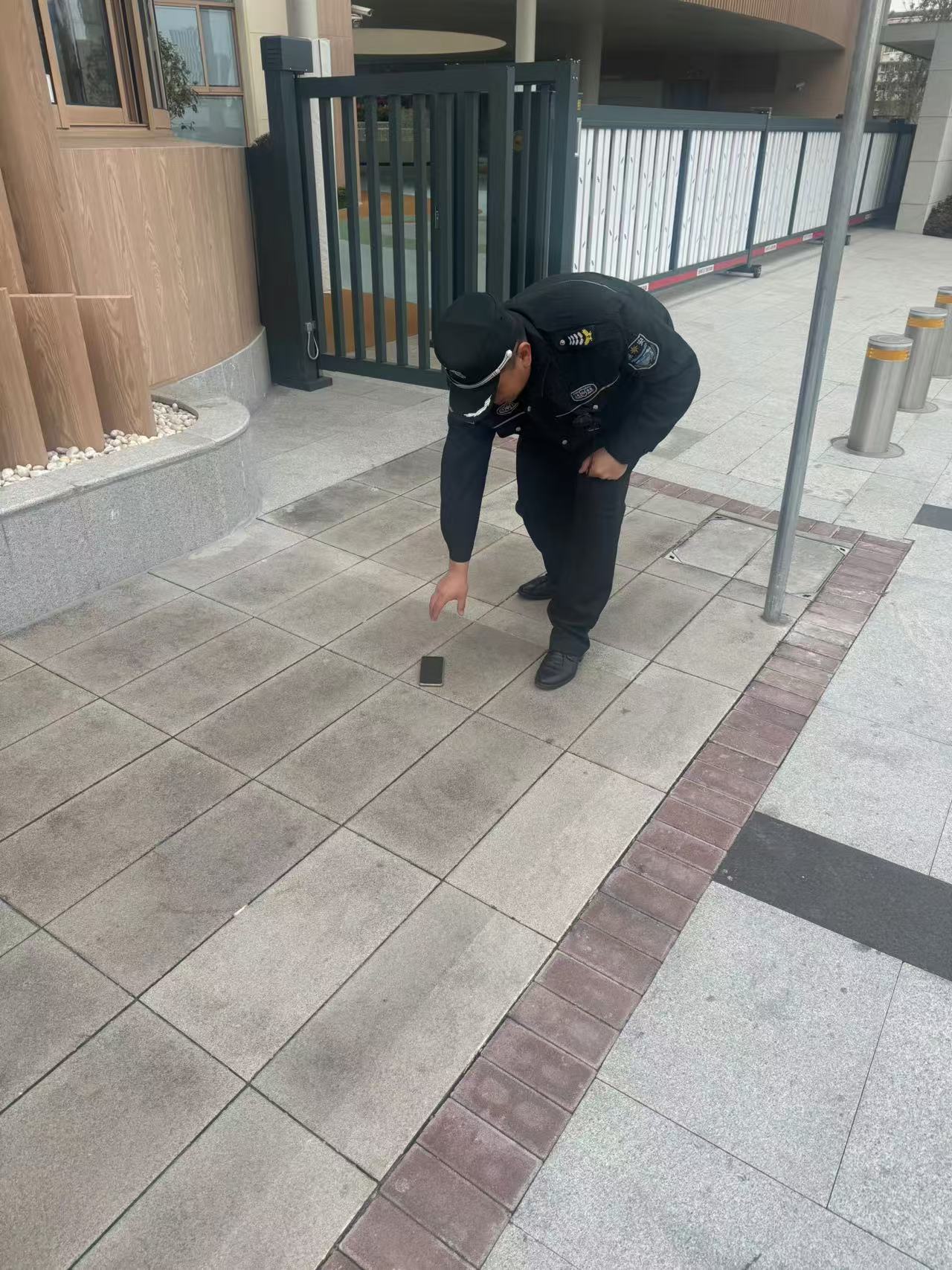 12月7日 20:27,宗保公司駐閔行區虹橋交管輔助項目員工殷建平在虹橋鎮井亭天地生活廣場(chǎng)附近巡邏時(shí),撿到一部蘋(píng)果手機,報告班組長(cháng)后便在原地等待。