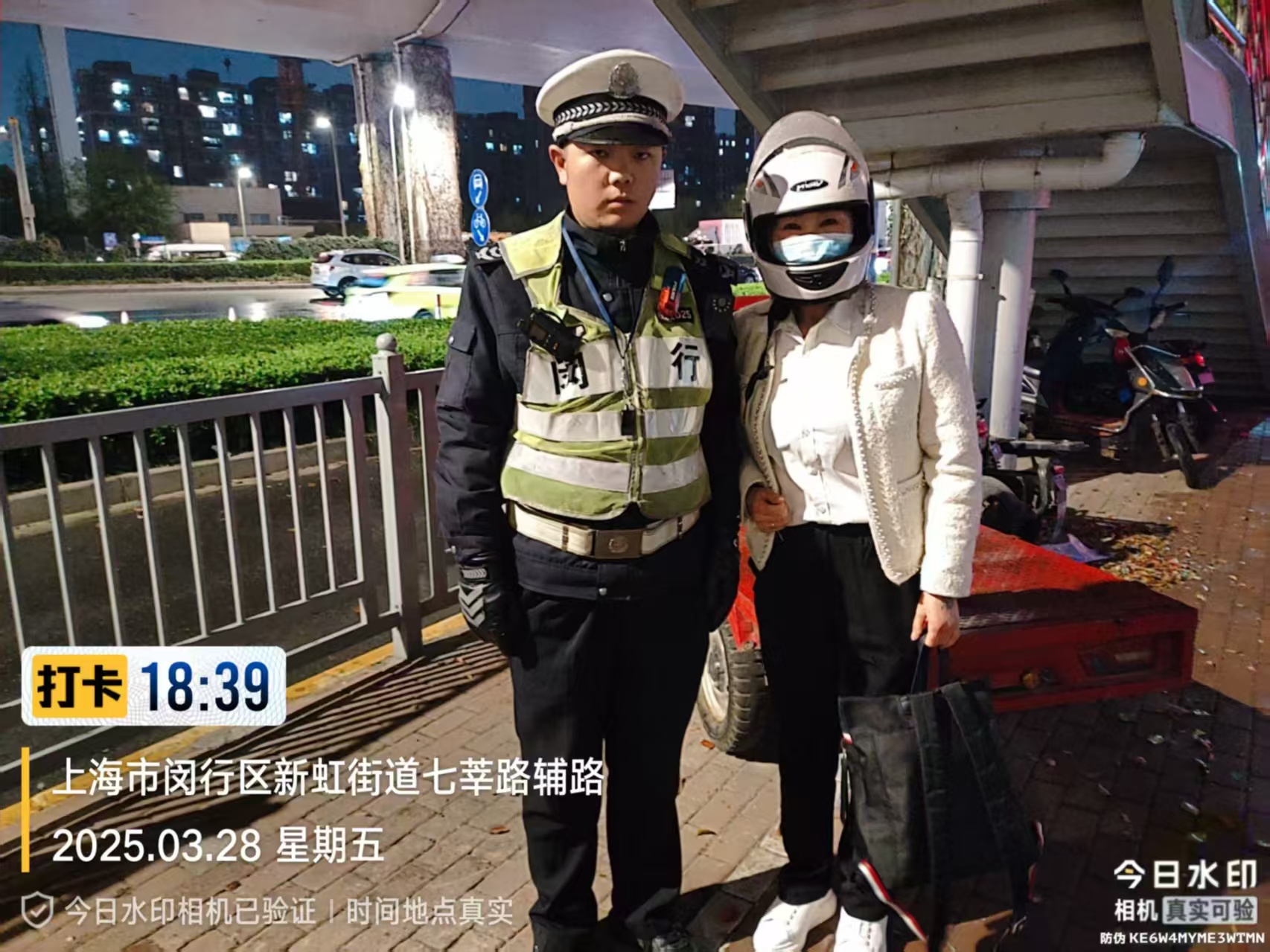大約2分鐘后,一位身穿白色外套的女士趕到路口。經(jīng)過(guò)當面清點(diǎn)核對包內物品,周家宇確認該女士是失主后,就把背包歸還給了她。失主面對失而復得的財物激動(dòng)不已,一再對周家宇的拾金不昧行為表示感謝。