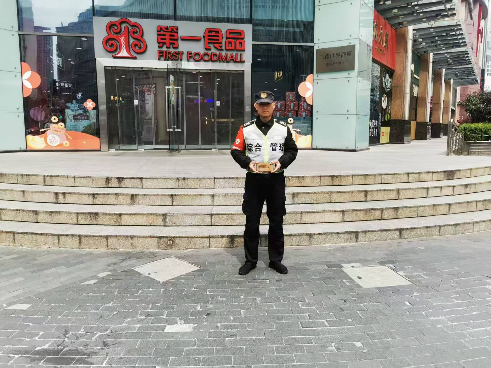 周家宇詢(xún)問(wèn)了附近的路人,但無(wú)人認領(lǐng)。于是,他將情況報告給項目負責人,并按指示在原地邊執勤邊等待失主。