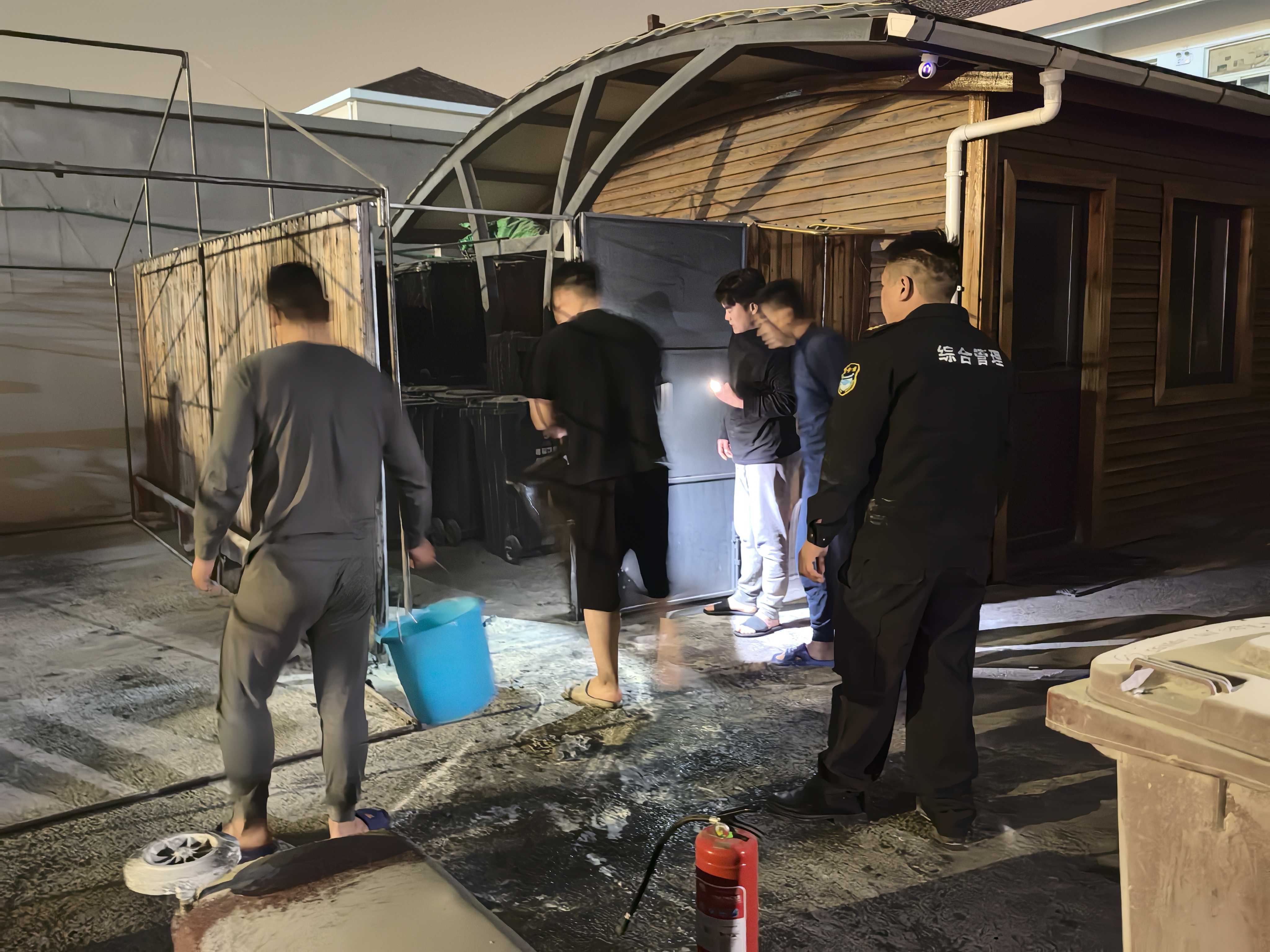 當晚21:08,公司員工徐晴第一時(shí)間發(fā)現火情,立即報告隊長(cháng)并大聲呼喊同事支援。數名員工迅速提起滅火器沖向火場(chǎng),但由于活動(dòng)中心電動(dòng)伸縮門(mén)緊閉,救援行動(dòng)一度受阻。危急時(shí)刻,兩名員工毫不猶豫翻墻進(jìn)入火場(chǎng),先行展開(kāi)撲救,其余隊員則合力推開(kāi)伸縮門(mén),攜帶滅火器材迅速增援。經(jīng)過(guò)數分鐘的緊張撲救,明火被徹底撲滅,現場(chǎng)無(wú)人員傷亡。