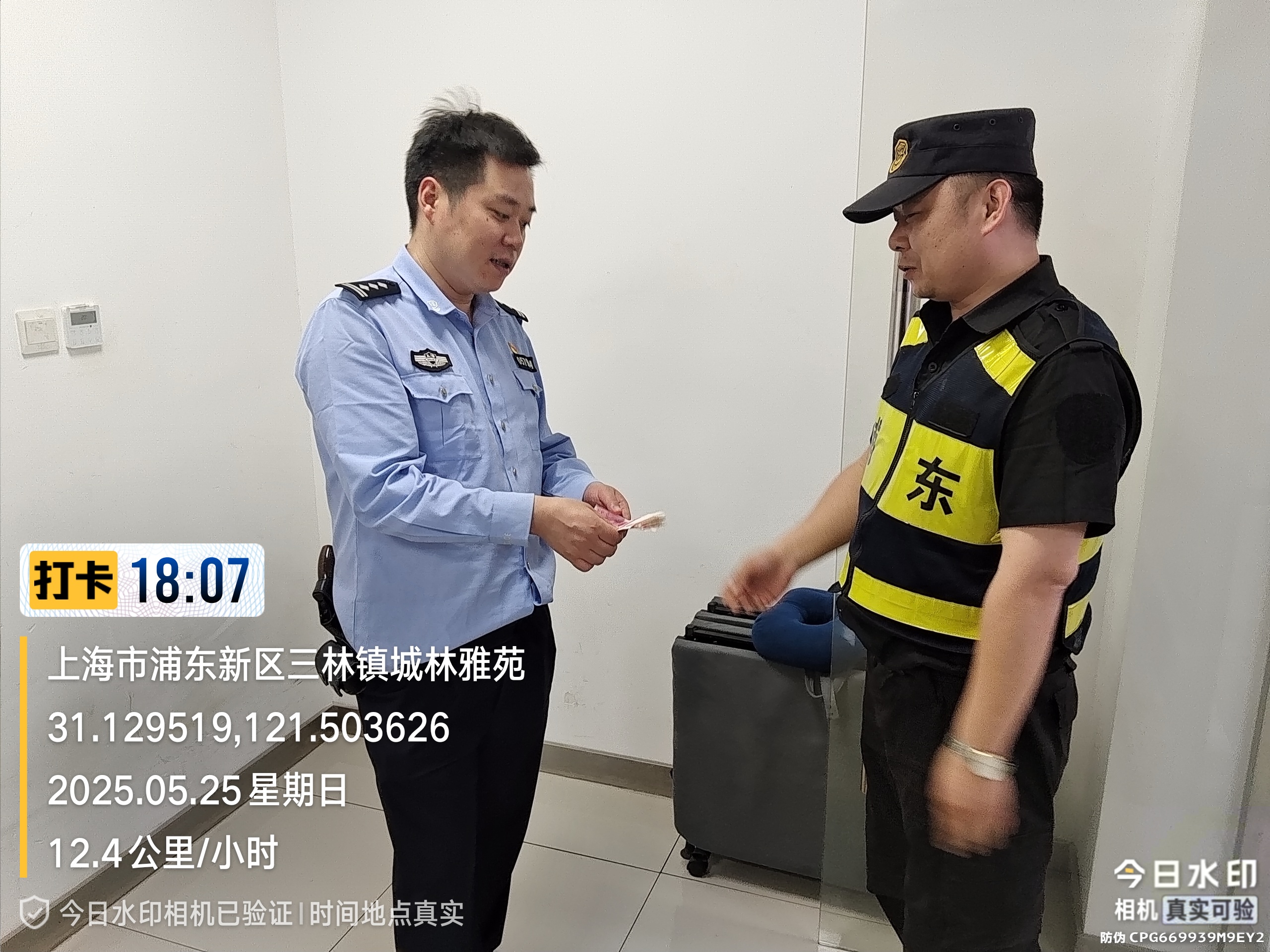 宗保公司駐浦東新區依水園派出所輔助項目員工撿到1000元現金上交派出所