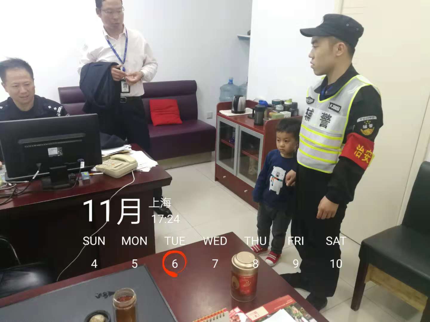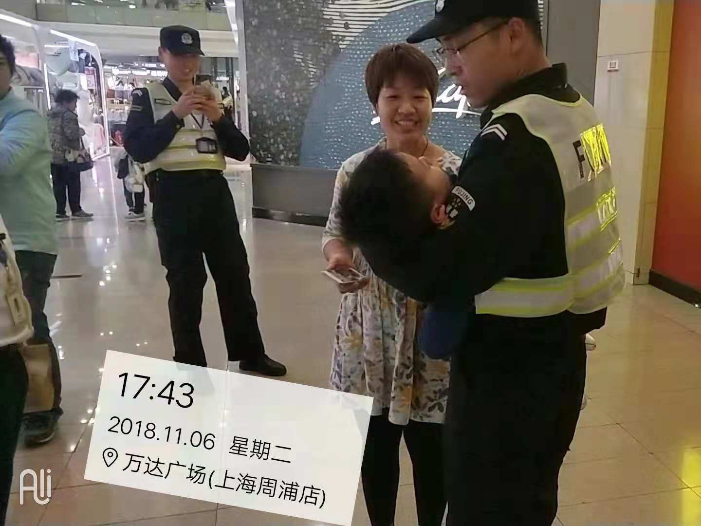 當天下午,宗保隊員薛建如在周浦萬(wàn)達巡邏期間,發(fā)現一名小男孩躲在一個(gè)角落里在哭。經(jīng)詢(xún)問(wèn)得知,小孩子多兩歲,與母親在萬(wàn)達逛街時(shí)走散。由于年齡較小,講不出父母名字和聯(lián)系方式。薛建如立即把這一情況上報帶班組長(cháng)苗靖,并安撫小朋友,將小朋友帶至萬(wàn)達警務(wù)站。