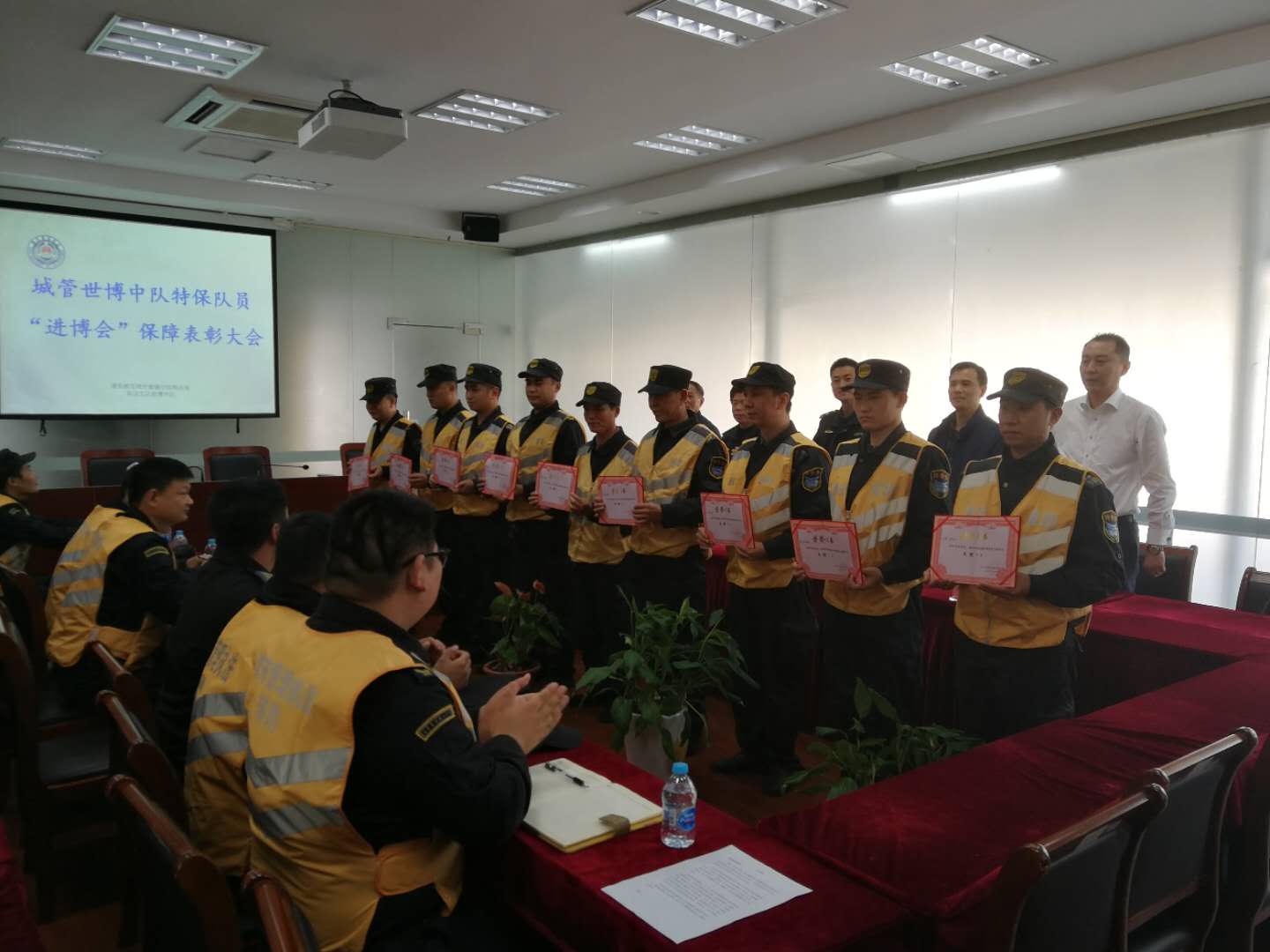 2018年11月29日14:00,城管世博中隊特保隊員“進(jìn)博會(huì )”保障表彰大會(huì ) ,在浦東新區東方路3689號舉行。