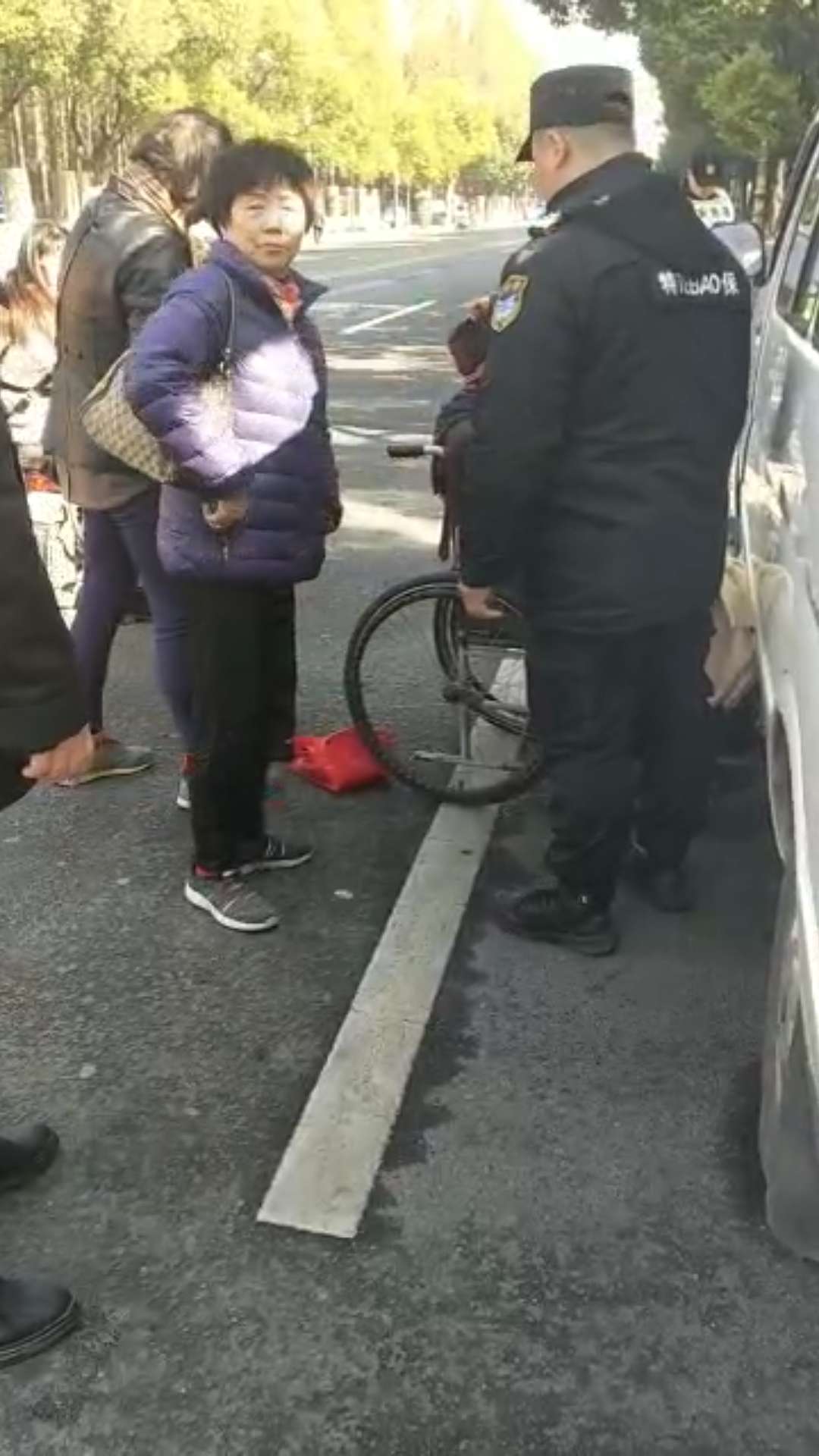 2018年12月18日12:30,宗保駐北蔡市容項目隊員們,在參加鎮政府保障蓮溪路北中路口,農民工討薪任務(wù)待命時(shí),發(fā)現在北中路上有一名推著(zhù)輪椅的老太太突然摔倒。帶隊組長(cháng)袁素東,隊員劉強,李建偉,馬正連4人立即上前對老人進(jìn)行攙扶幫助。在確認老人并無(wú)大礙后,隨即步行一公里左右,將老太太及坐在輪椅上的老大爺一起送回住處。