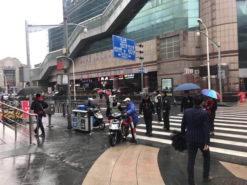 節日期間,隊員們不僅要做好節假日戶(hù)外人群聚集區域的安全保衛工作,各警區隊員還要協(xié)助民警在各個(gè)違章易發(fā)路口進(jìn)行設卡整治交通違章。每天參與小陸家嘴地區交通整治,協(xié)助民警現場(chǎng)處罰非機動(dòng)車(chē)違章違紀100余起,勸誡不遵守交通法規游客上百余人,改善了節日期間各景區的交通出行秩序。