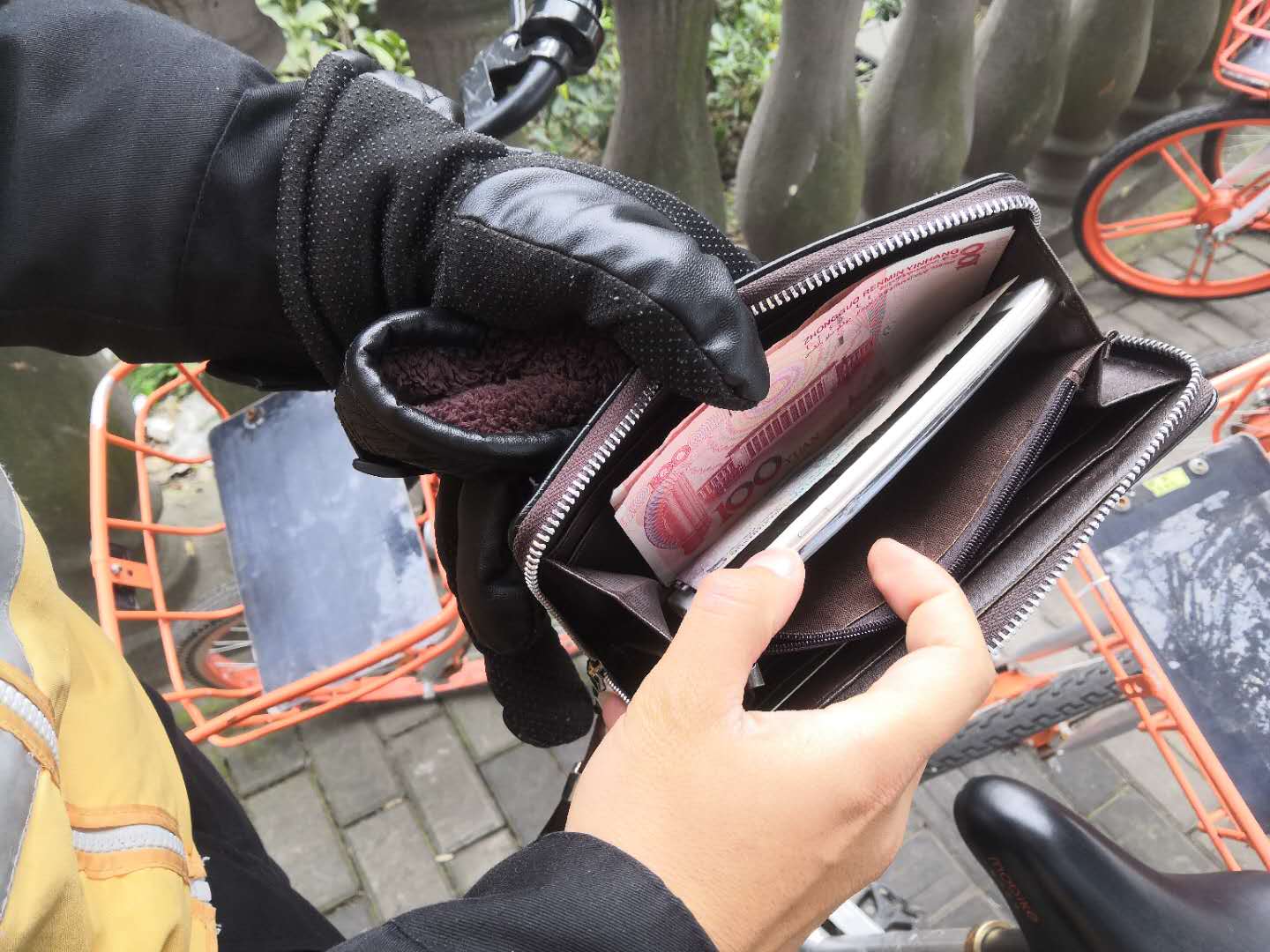 2019年1月2日09:30,宗保駐金橋市容隊員何金標、羅友恒在新金橋路1745號執勤擺放共享單車(chē)過(guò)程中,發(fā)現有一輛共享單車(chē)前面車(chē)斗內有一個(gè)錢(qián)包,當事人不在現場(chǎng)。兩位隊員立即上報區域負責人。在上報過(guò)程中,失主來(lái)到了現場(chǎng),根據錢(qián)包中的身份證和手機號碼的核對,確認錢(qián)包是當事人后,將錢(qián)包歸還給失主。