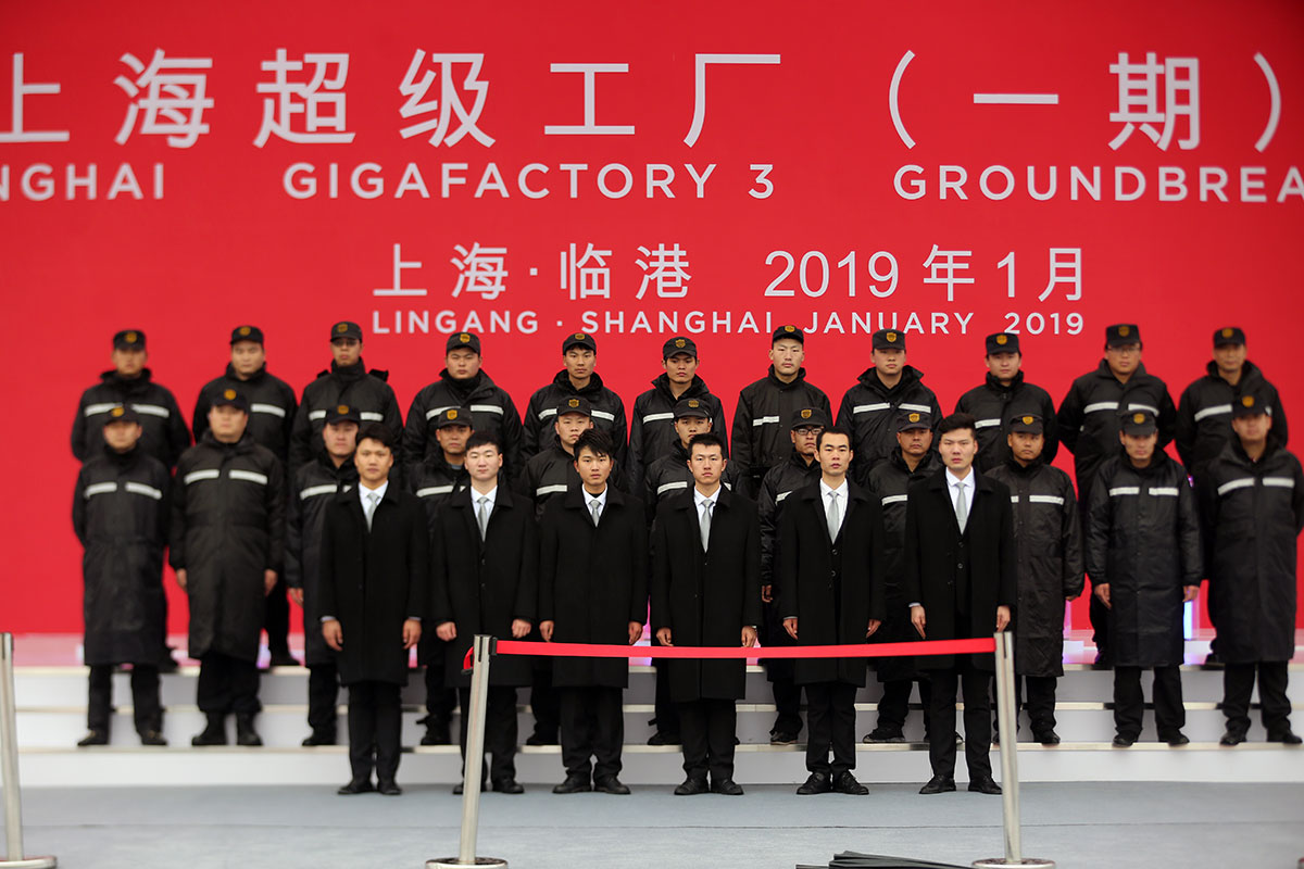 2019年1月7日,特斯拉上海超級工廠(chǎng)在臨港舉行盛大的開(kāi)工典禮,宗保駐臨港項目承擔了此次活動(dòng)的現場(chǎng)保障工作。