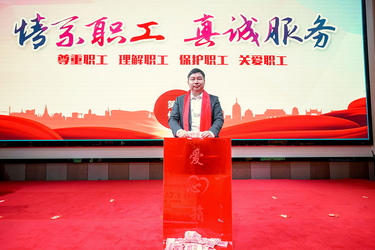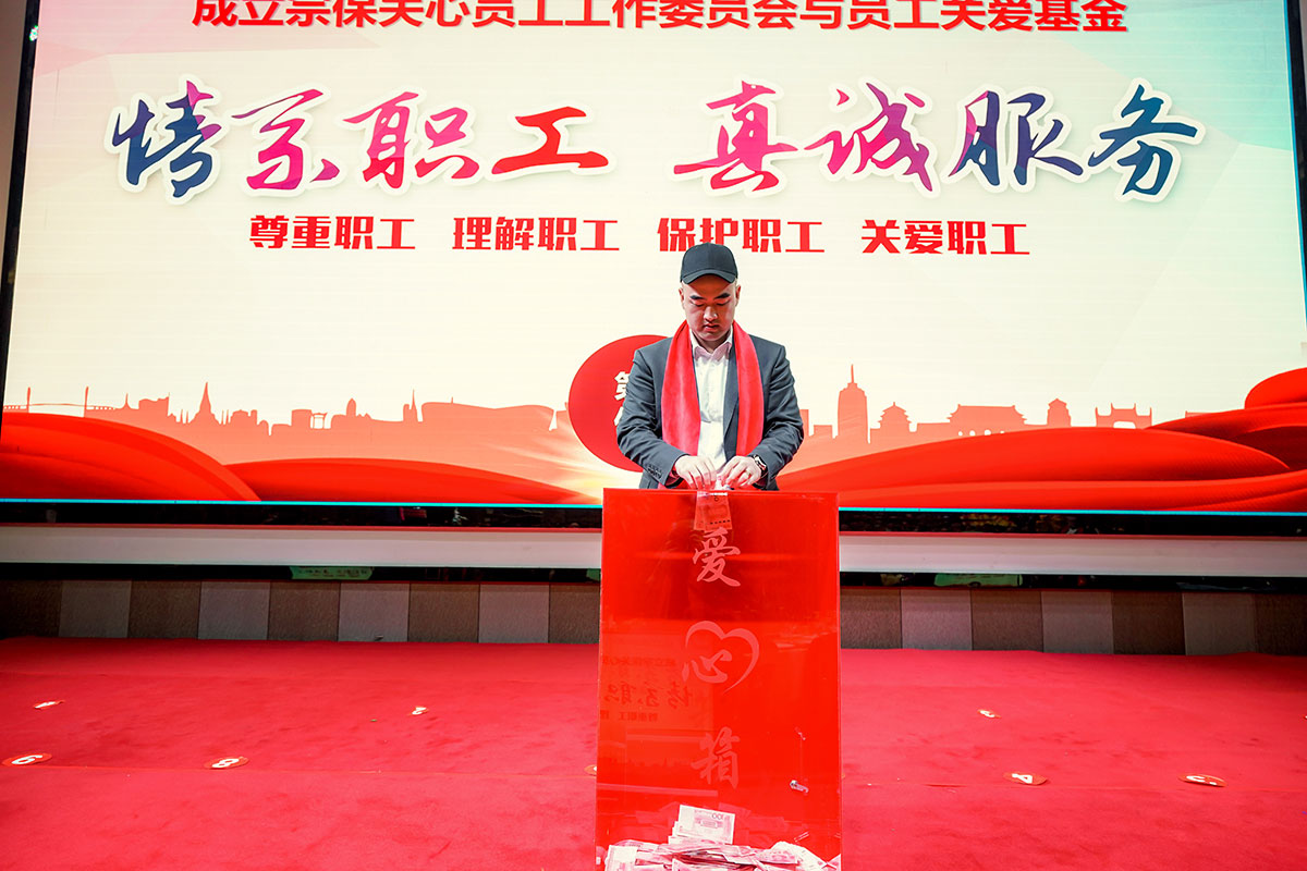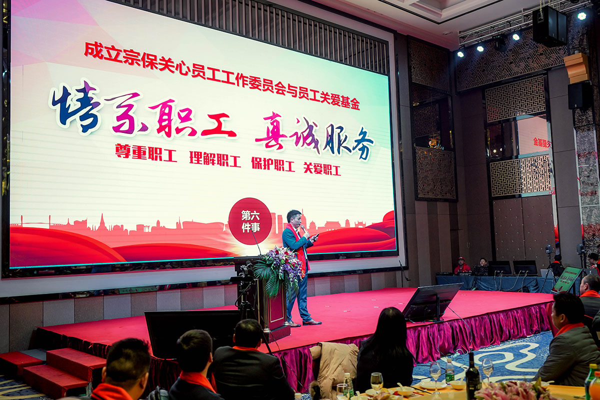 2019年1月11日晚,在宗保公司的年會(huì )上,隨著(zhù)董事長(cháng)馮中保宣布“關(guān)愛(ài)員工愛(ài)心基金”的成立,現場(chǎng)掀起了愛(ài)心捐款熱潮。
