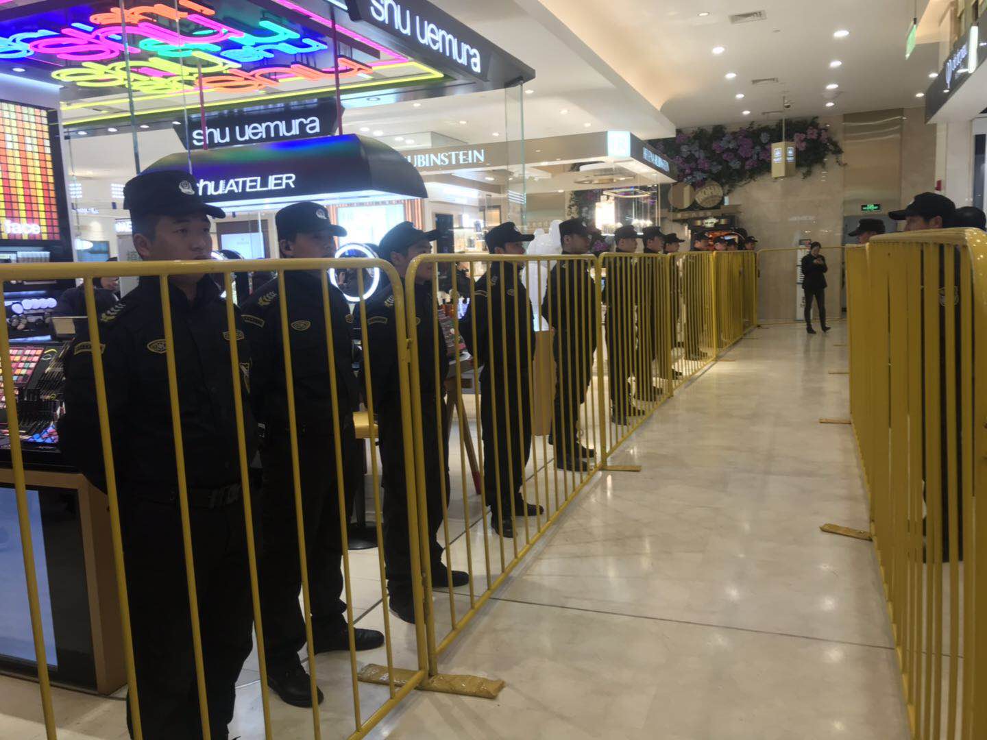 由于活動(dòng)當天為周末,顧客較多,再加上有新生代當紅明星現場(chǎng)互動(dòng),容易引起大量粉絲及顧客圍觀(guān)。公司領(lǐng)導親自現地勘察,多次溝通轄區派出所,反復推敲保障方案,制定多套應急預案,最終敲定方案,確?;顒?dòng)能安全順利的展開(kāi)。