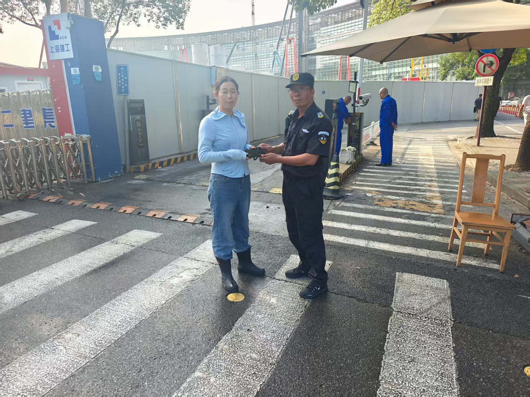 06宗保公司駐浦東新區陸家嘴綜合管理項目員工石繼文撿到2600元現金等物品上交民警幫尋失主