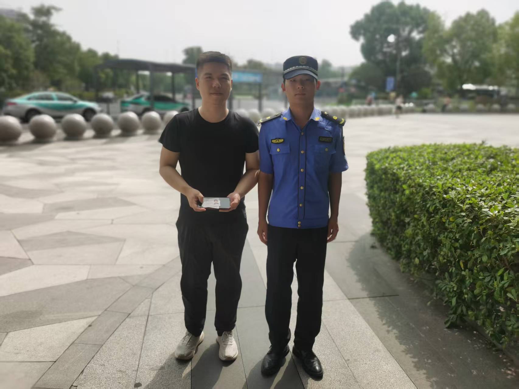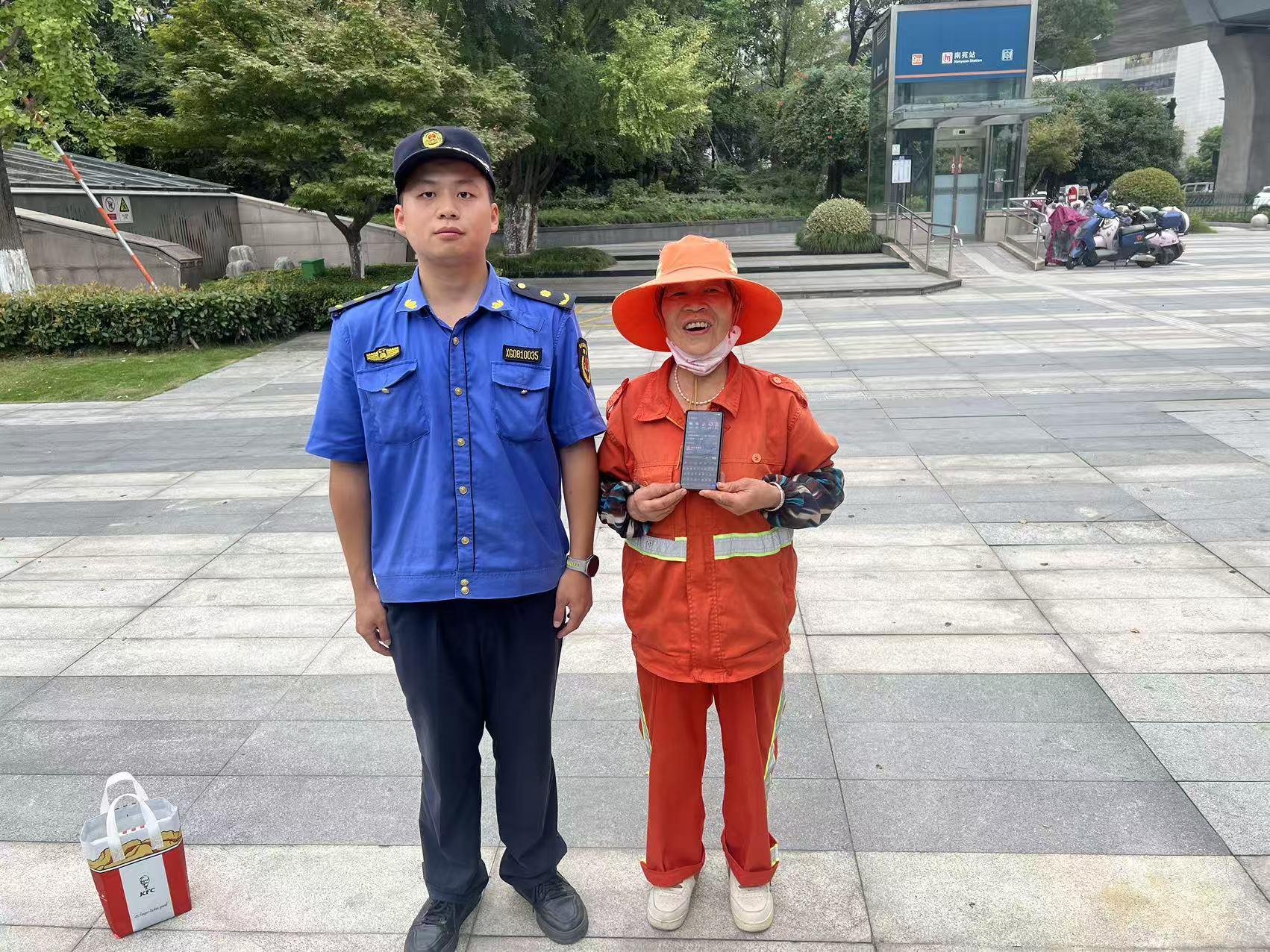 9月30日10:20,浙江民泰公司駐杭州市臨平區新城市容項目員工原付凱在臨平南站北廣場(chǎng)巡查時(shí),撿到一部華為手機、一張身份證和一張社???。因一時(shí)無(wú)法聯(lián)系到失主,原付凱便將情況報告了項目負責人,并按要求在原地邊巡查邊等待。