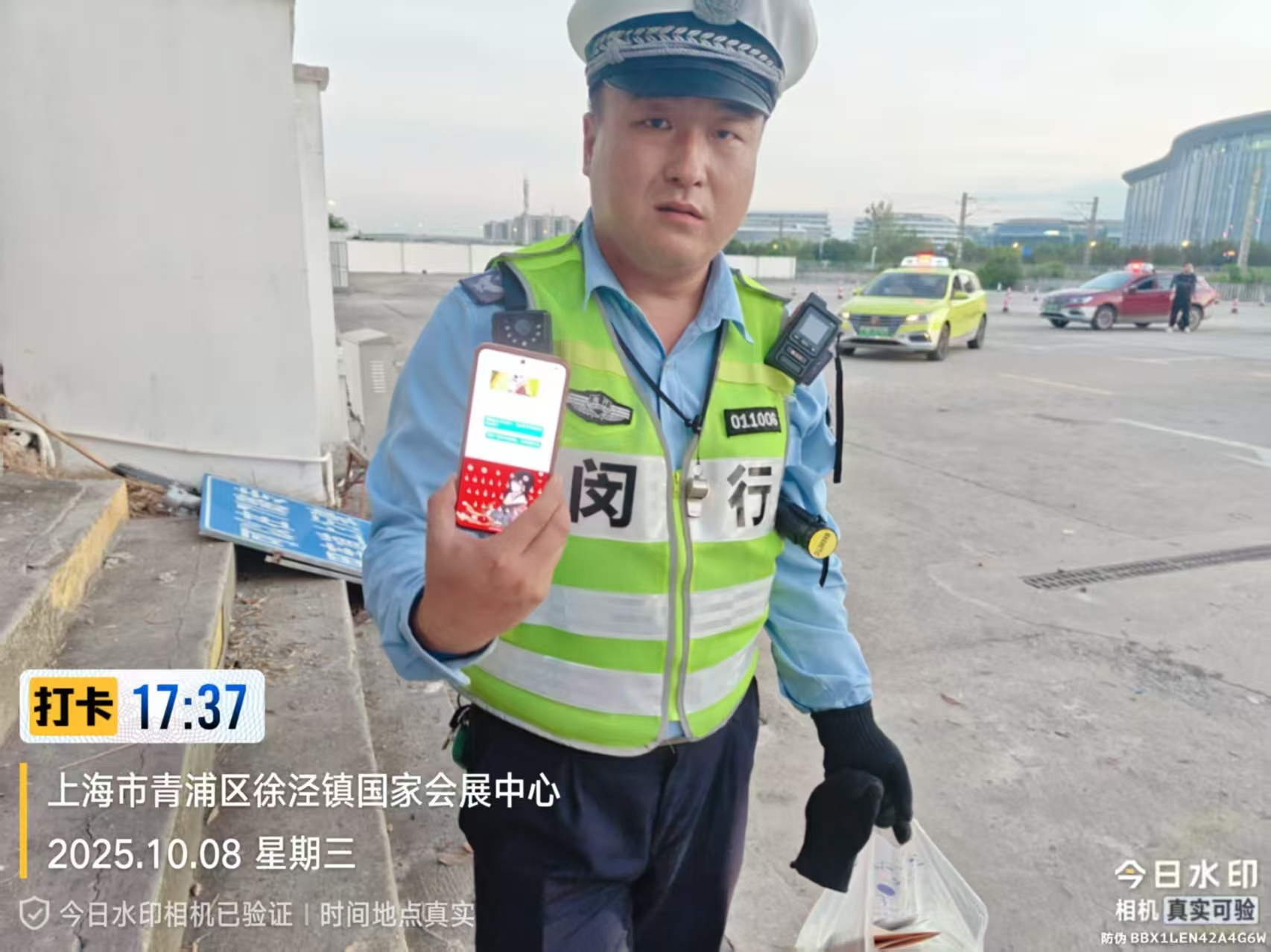 10月8日17:37,宗保公司駐閔行區華漕護校項目員工劉永立在上海國家會(huì )展中心P0進(jìn)口保障時(shí),撿到一部華為P50pro手機,詢(xún)問(wèn)周?chē)啡藷o(wú)人認領(lǐng)后,便將情況報告了項目負責人,并按指示在附近邊值勤邊等待失主。