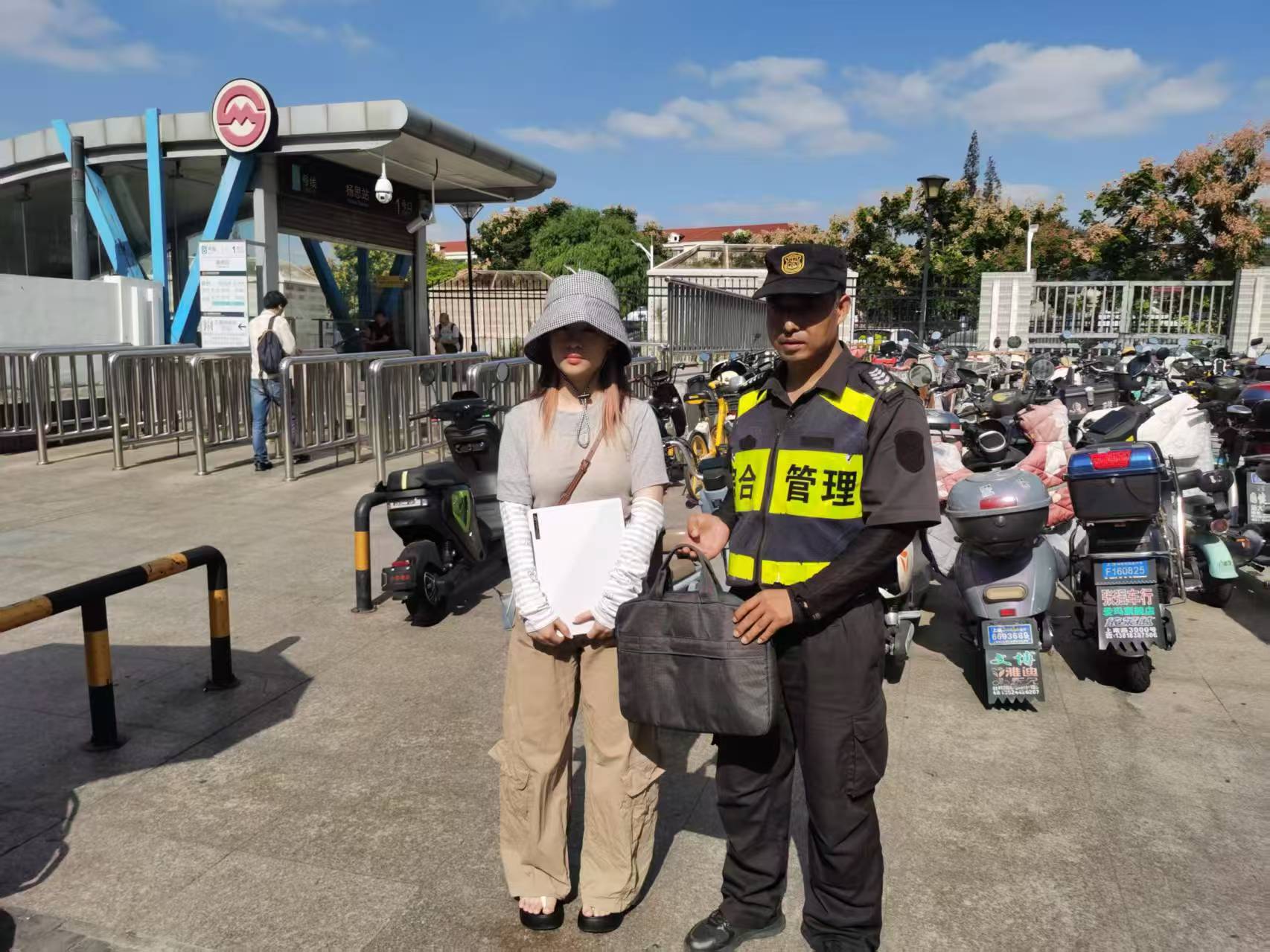 9月29日14:40,浙江民泰公司駐杭州市臨平區新城市容項目員工李國慶在南苑地鐵站C口巡查時(shí),撿到一部Vivo手機。報告項目負責人后,便在原地邊巡查邊等待失主。